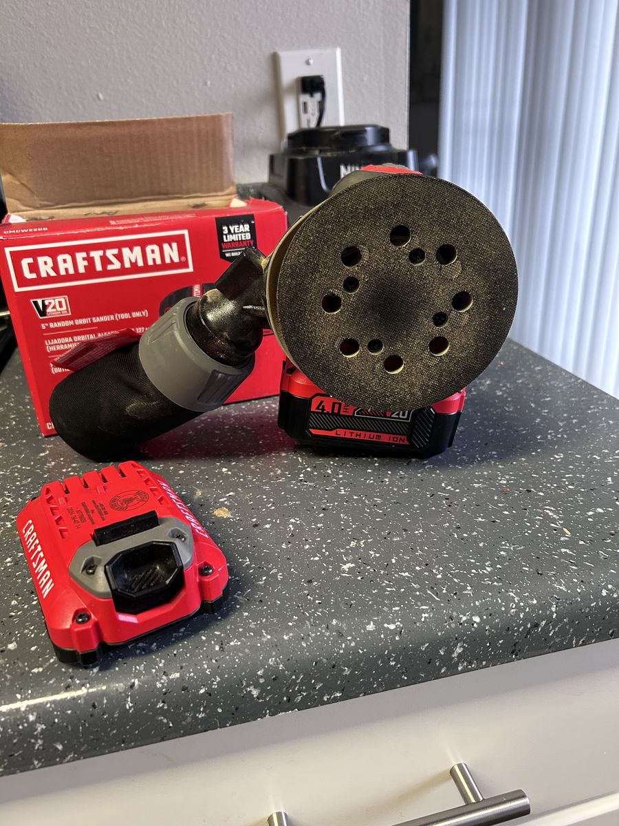 Only used once! Comes w: •35-40 sanding discs (120 & 220 grit” •2 batteries •dust collector