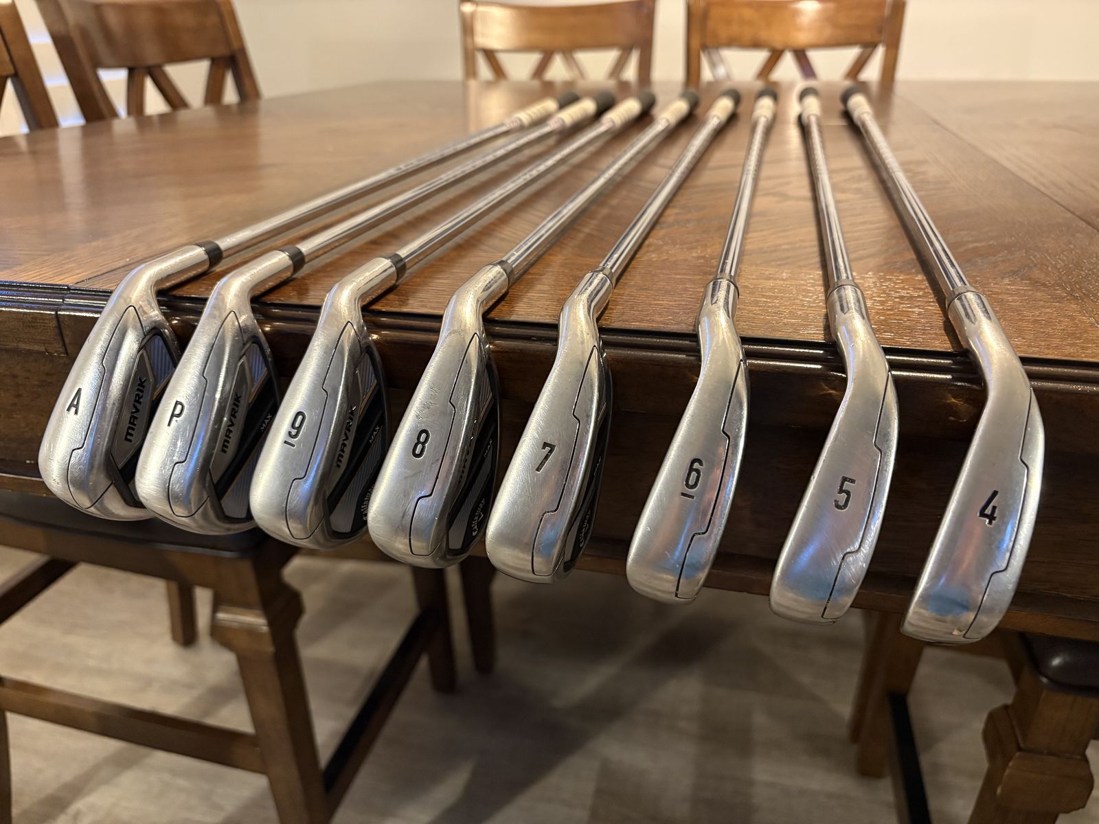 VenmoThis set of Callaway Maverick Max clubs are a 4-PW-AW set. Full set of used irons in good condition. Regular spine MAX KBS R80 steel shafts. These irons have been cut to 1/2 in shorter than standard length. Golf Pride MCC grips in really good condition. I have advanced past this club and upgrade to a more advanced clubhead. Any questions please text/call Nate at (480) 241-0906. Thank you.
