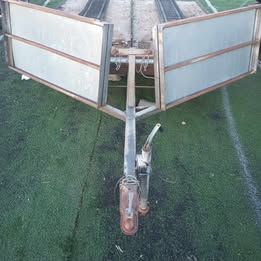 This trailer is in good condition overall. The wood does have some wear, See Pictures for details. My husband was going to replace the wood but just had knee surgery. Tires are in good shape. This can be a drive on drive off trailer. Each side also tilts independently. Really a neat design. Feel free to ask questions.