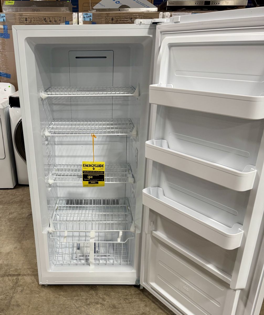 GE 28 Inch Freestanding Upright Freezer with 14.1 cu. ft. Capacity, Turbo Freeze, Lock and Key, Audible Temperature Alarm, Electronic Temperature Control, Garage Ready and LED Interior Lighting