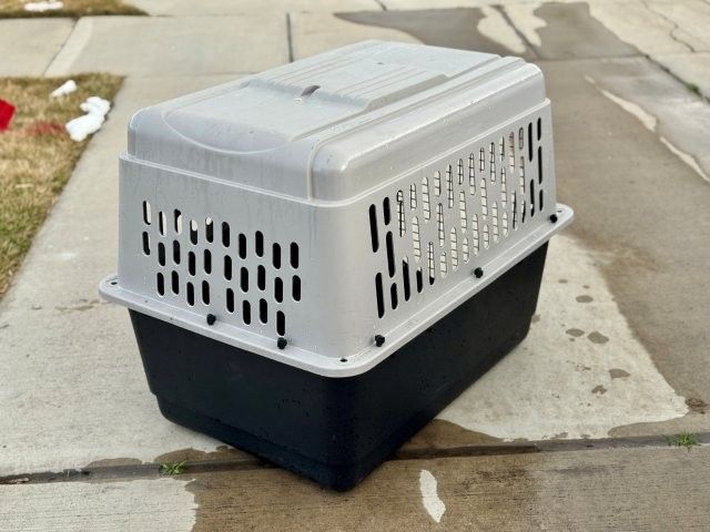 Dog kennel carrier by Aspen. Large Fits pets 25" to 26" tall, 50-70 lbs. Boxers, Airedales, Huskies, Std. Poodles, Labradors. Dimensions: 36"L x 25"W. x 28"H