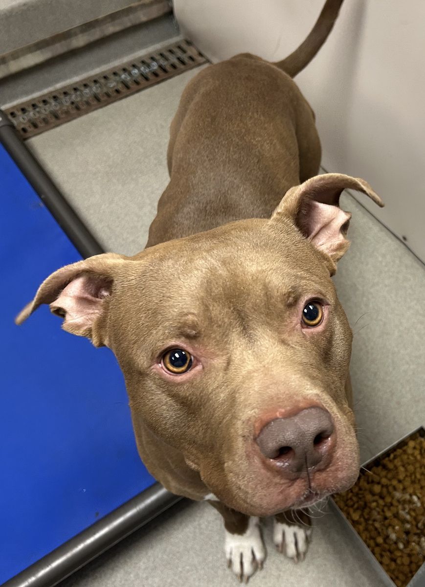 Hi, I'm Twix! Just like the candy bar, I'm the perfect mix-sweet, a little nutty, and guaranteed to make your day better. I'm a two-year-old pit bull with a big personality and an even bigger love for adventure. I'm the kind of guy who's always ready to get up and go, whether that means a walk around the neighborhood, exploring a new trail, or supervising snack time (strictly for quality control, of course). I'd do best in an active home that can help me polish up my manners and keep my smart brain busy. If you're looking for a loyal sidekick who's equal parts fun and flavor, I promise I'm way better than sharing an actual Twix-because once you bring me home, you won't want to split me with anyone!