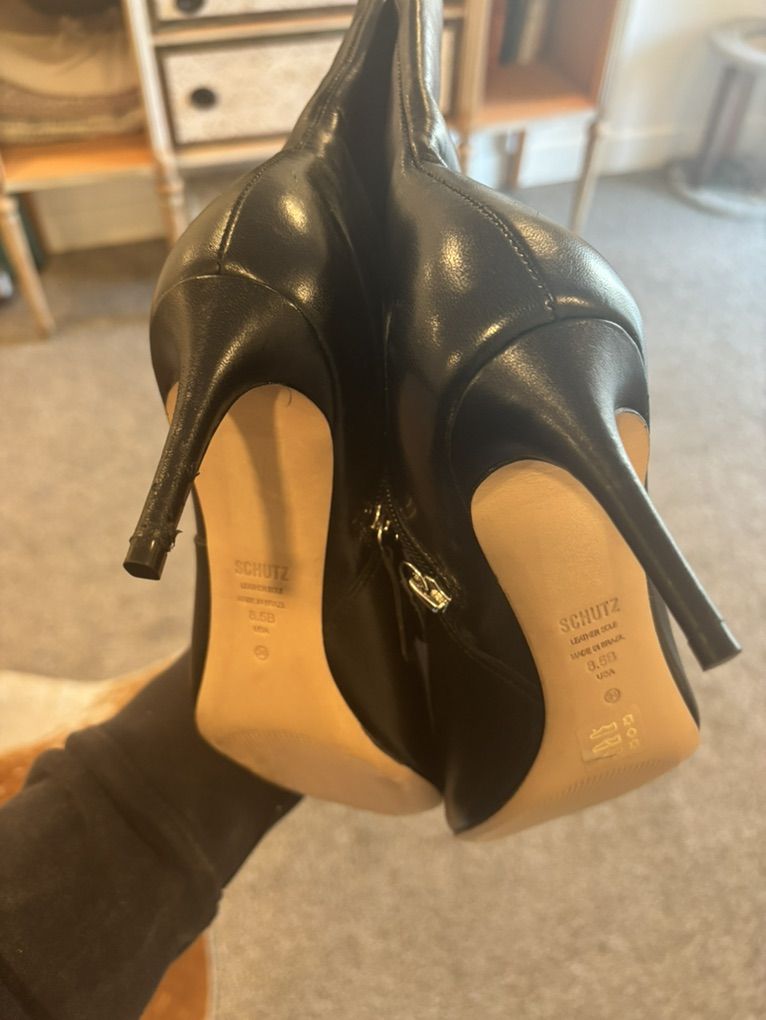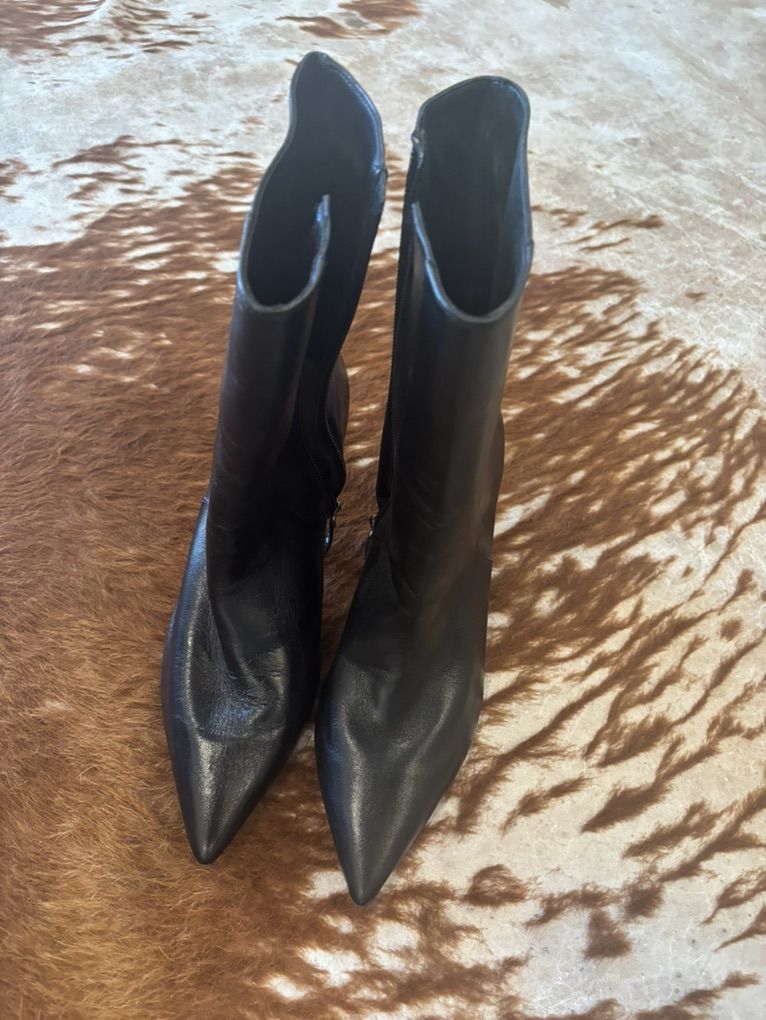 VenmoBlack Mid Calf Boot. Asking $80.00 Stiletto heel size 8.5 Real Leather - Great condition. No longer fit my daughter.