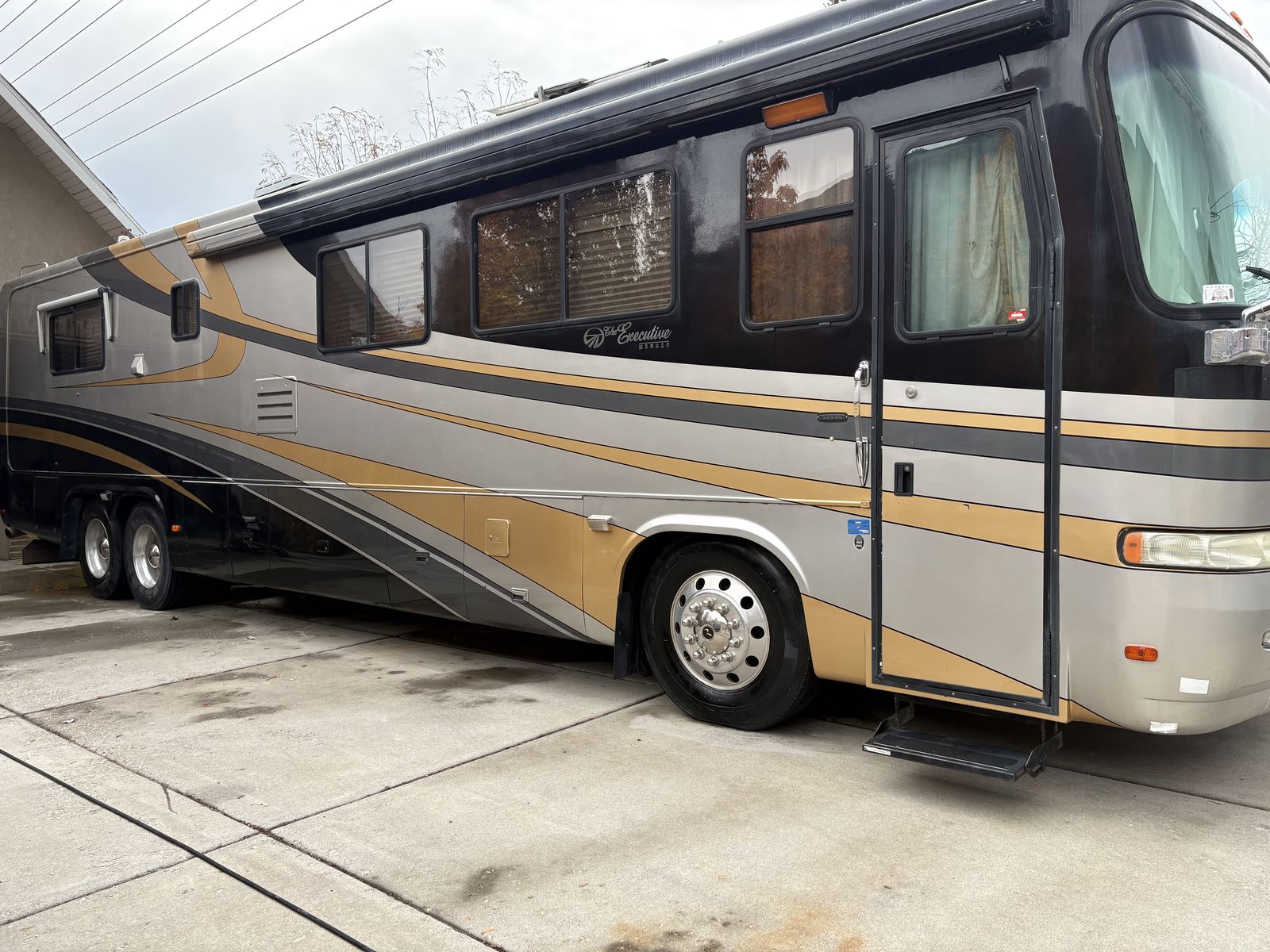 This 2001 Monaco Executive 42 door tandem axle 500 HP Diesel powers top of the line coach,