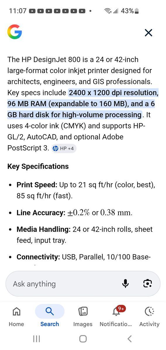 This awesome plotter/printer has a new carriage belt that hasn't been used. Needs inks, and new print heads. Price reflects this. Prints 24" and 42" wide materials. Comes with a roll of paper. The drivers can be downloaded.
