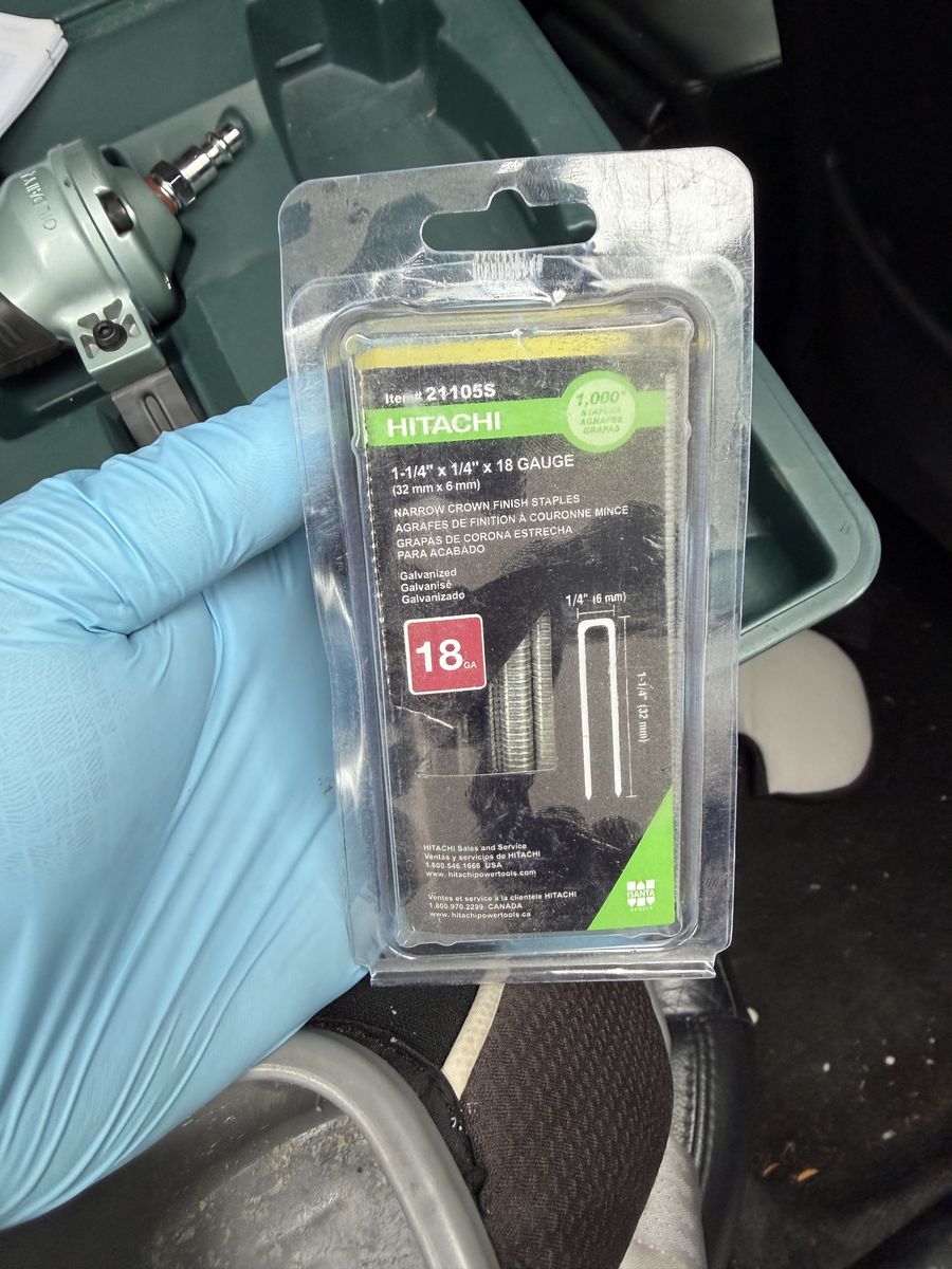 Almost new hitachi 18 gauge narrow crown stapler nailer in case it’s in great overall condition. Works great. 1-1/4 × 1/4 x 18 GAUGE $65.00 OBO