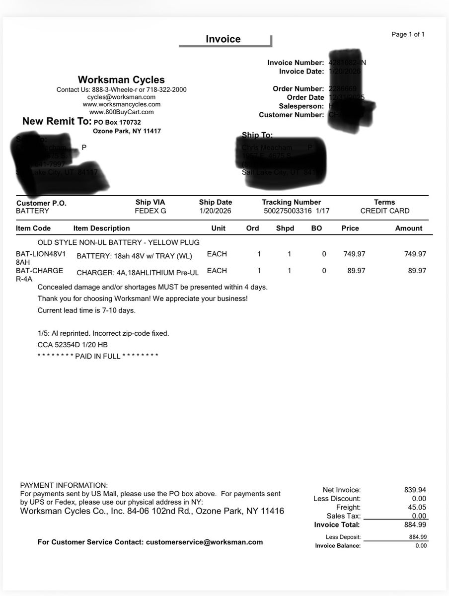 Worksman Mover electric trike. This is a really nice industria/commercial quality electric trike. These are $3000 new with the upgrades this one has. Has strong basket for hauling stuff and locking rechargeable 48V lithium battery. Upgraded tires. Used in warehouses, or would be fun to have as a neighborhood cruiser or grocery getter. would trade for something same value or add cash on either end.
