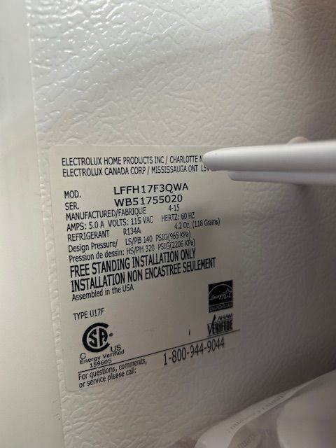 Frigidaire 17 cubic foot. Works great. Been in garage and we're upgrading.