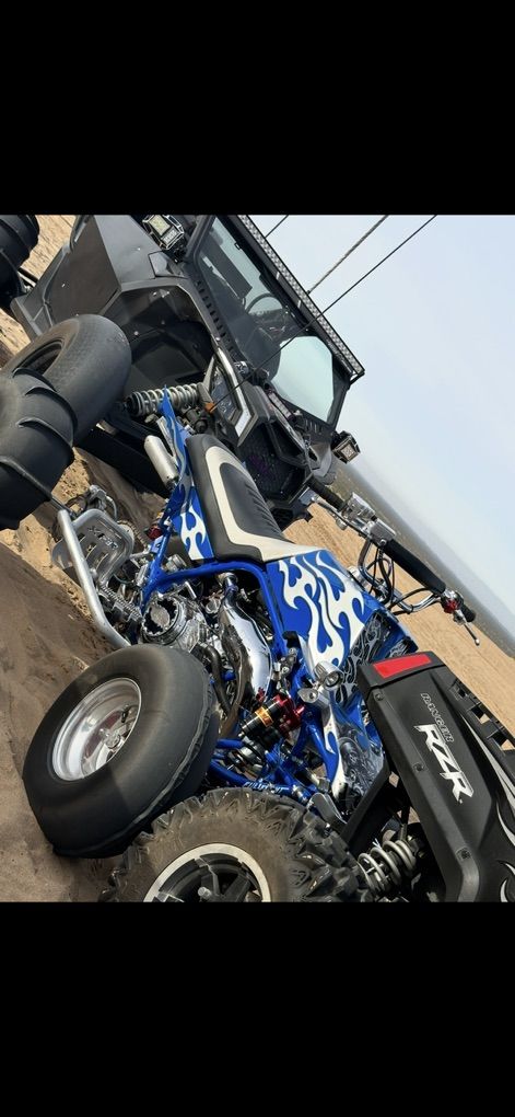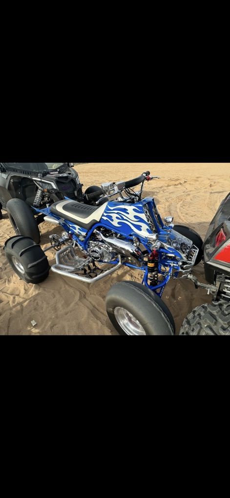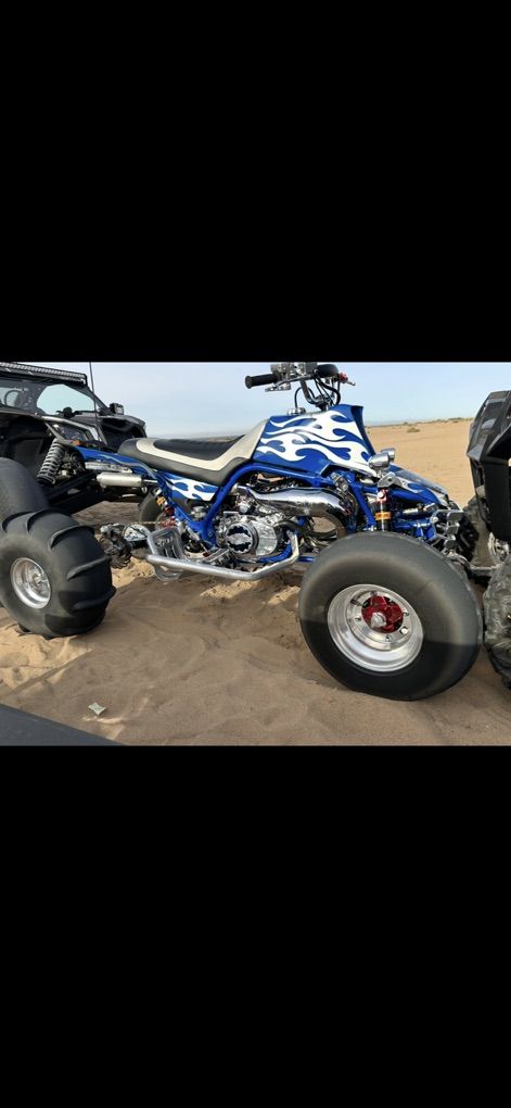 Banshee 498 super cheetah cub Up for sale this is my one of a kind banshee Has around 100hp at the wheels build by Redline racing ($8k) Runs on vp 110 fuel All Elka race suspension Also has a one of a kind steering stabilizer that’s adjustable Every part is chrome or polished aluminum and or powder coated to match H&s customs air brushed all the custom one piece front and back ($6k) Custom seat , grips , bars 250r style extended swing arm nerf bars Bike is absolutely flawless to much to list Well over $40k investment into this build Most reliable banshee out there turn heads win shows and races Please only serious inquiries this is a very rare and expensive bike Comes with dirt street tires and paddles Moving must sale $19,500
