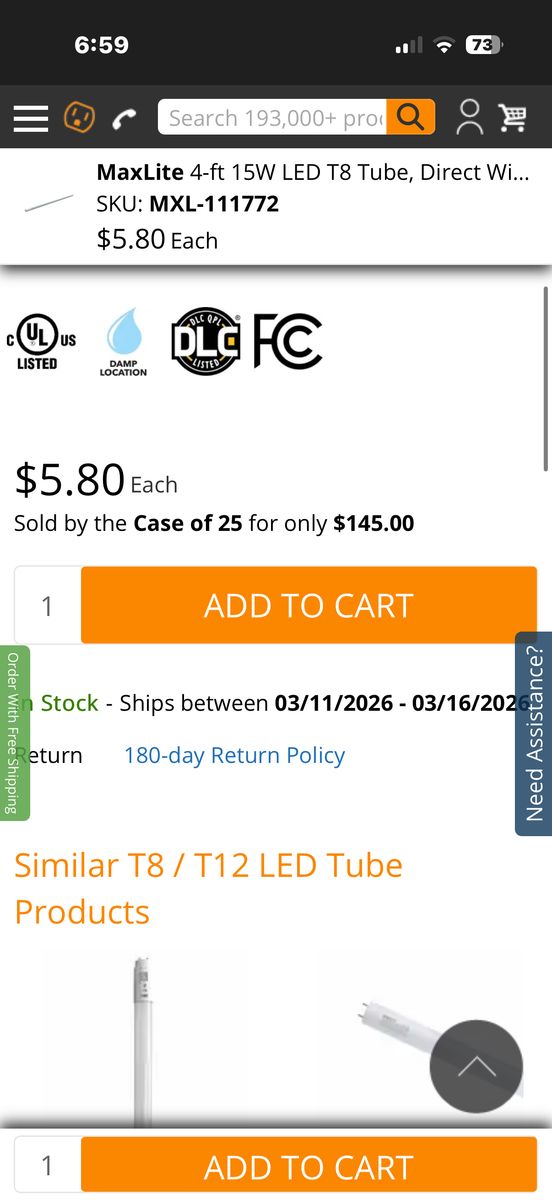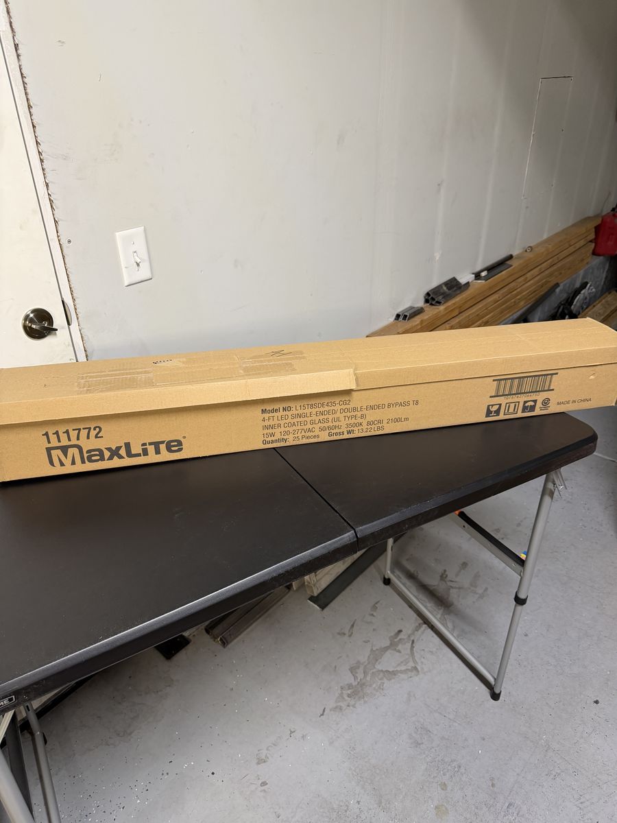 Brand new MAXLITE LED T8 Tube Lights, sold as a full case of 25 bulbs. Great for shops, garages, warehouses, offices, or replacing fluorescent tubes.