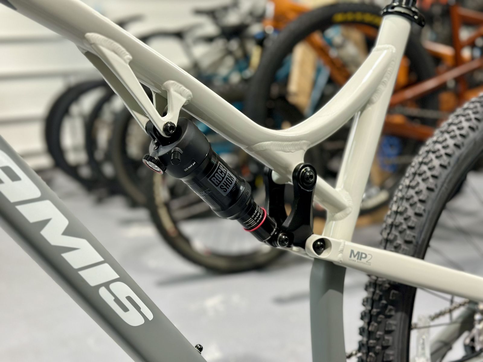 Frame: Triple-butted 6061 alloy, 120mm MP2 suspension, 1.5–1⅛" tapered head tube, asymmetrical chainstays, 12×148mm thru-axle, internal dropper routing, ISCG05 chainguide mount, replaceable derailleur hanger