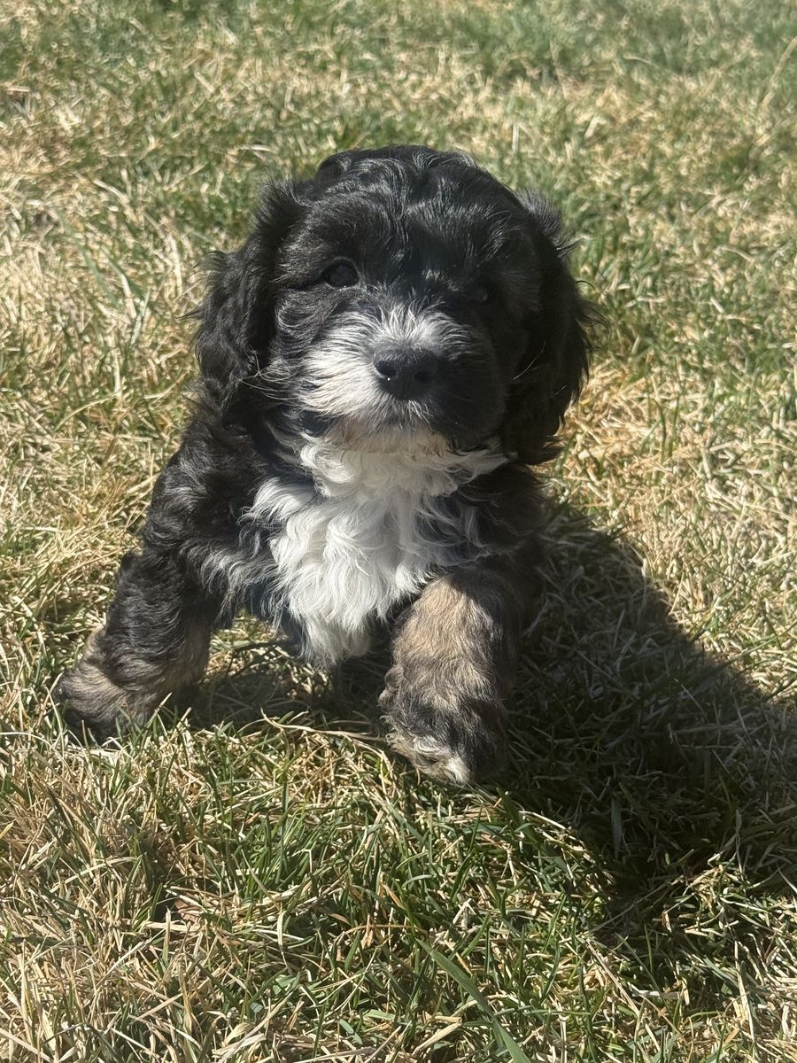 ZelleI have two super cute black cockapoos! One male one female. They are full of life and love to be around people They are 8 weeks old. Mom is a 15lb f1 chocolate cockapoo and dad is a 23lb f1 black and white cockapoo. There were born January 12th. They are current on vaccine and dewormer and Thier tail has been docked. If you would like to meet them shoot me a text 801-362-4866. My name is Camille