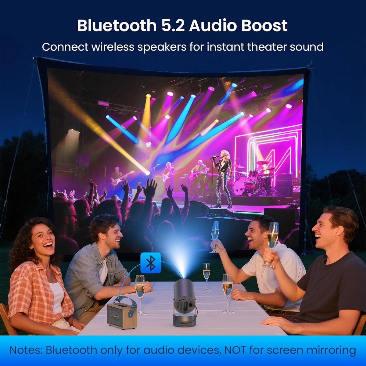 NEW IN BOX! Projector with WiFi and Bluetooth, Mini Portable Projector with Built-in Rechargeable Battery for Outdoor, 1080P Supported, Electric Focus & Auto Keystone, Home Theater with 210° Mount