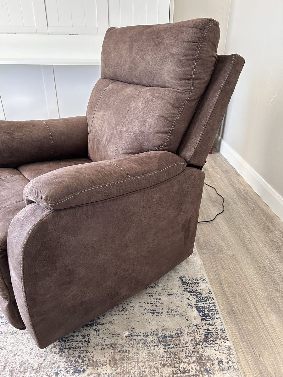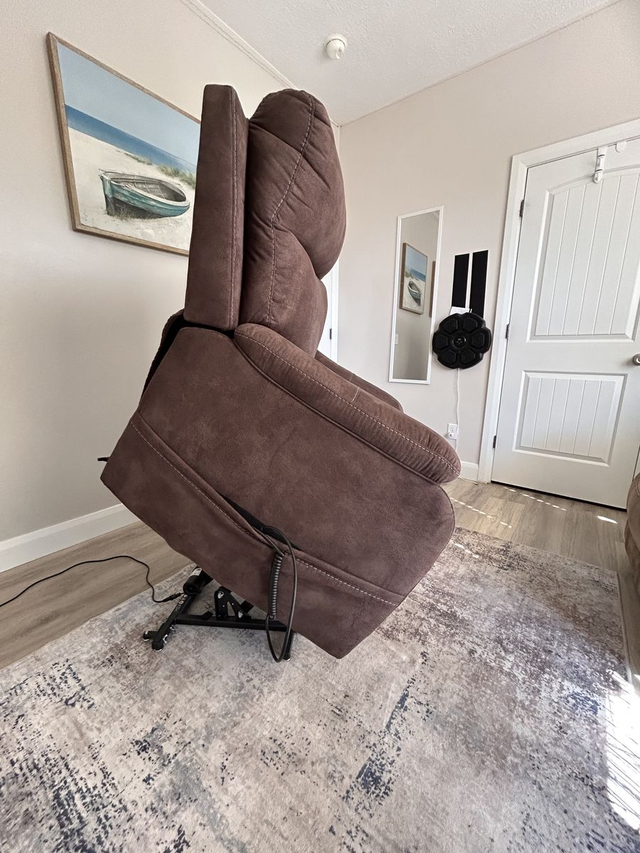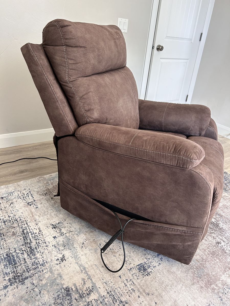 CashAppOBO Like new!! Brown lift chair from Ashley furniture - less than a year old. Has high and low heat - high, medium and low massage. 35W x 40D x 42H Refer to the video to see how it operates. So easy and was perfect for my mom. We had a waterproof fabric protector on it so there are no spills or stains. Perfect for the elderly or anyone needing an assist getting out of a chair Non smoking home There is a hypoallergenic dog in the home