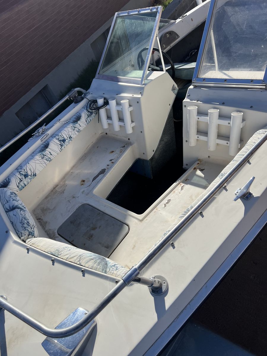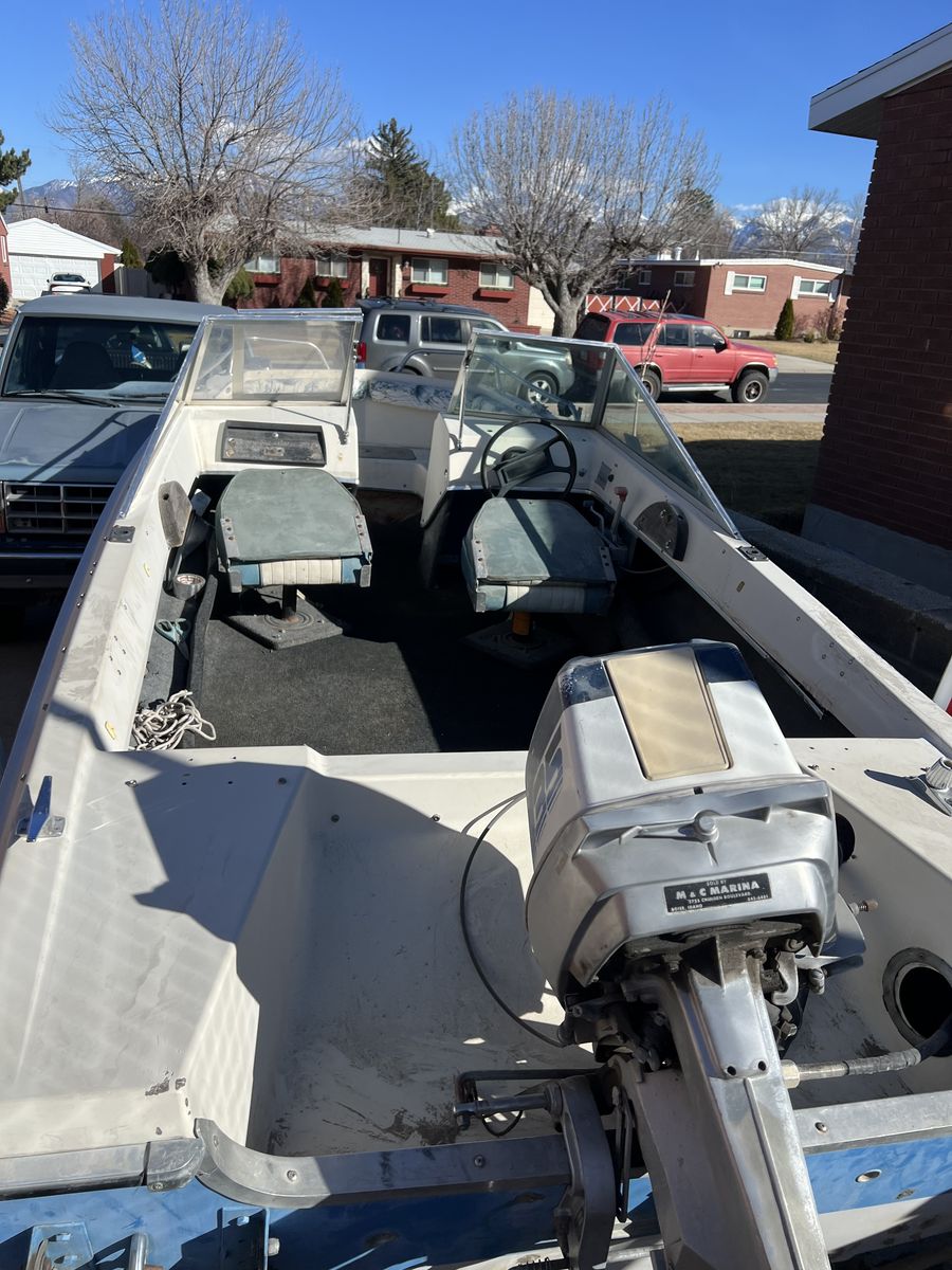 Zelle16 ft fiberglash boat with motor. Im open to traes for similar value, Just let me know what you got. Asking price $1,200 or BO