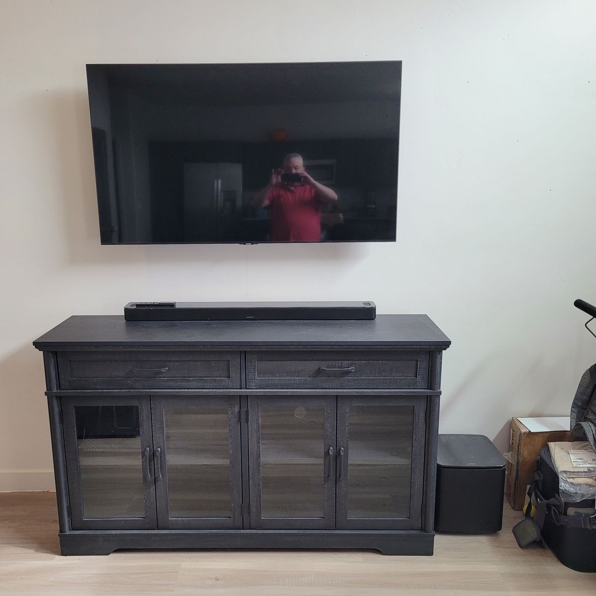 Black TV Stand and 60" Samsung TV. The TV stand looks grey but it's actually black I'm moving and need to get rid of everything. (Must Buy Before 3/13)