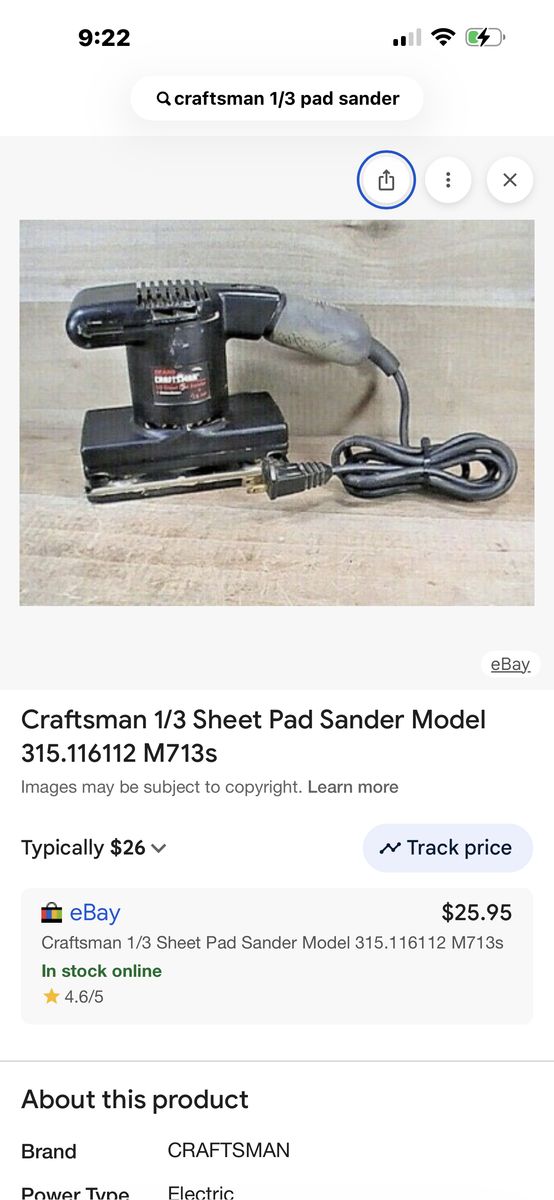 Nice craftsman pad sander in good working condition! These run in excess of 25.00 plus shipping online as shown in photos! These are expensive! !!! Don’t pay retail prices, call Dustin instead at 801-205-3404, I need it gone!