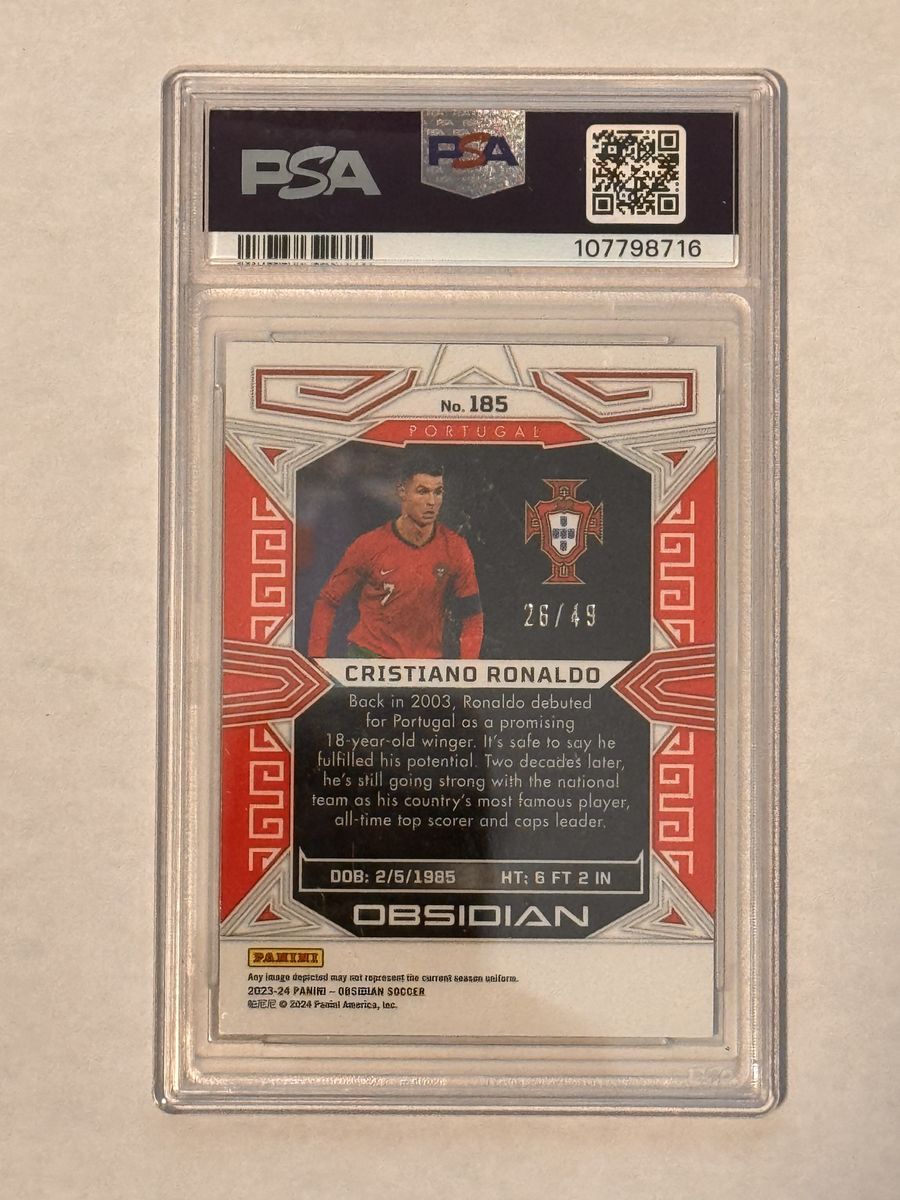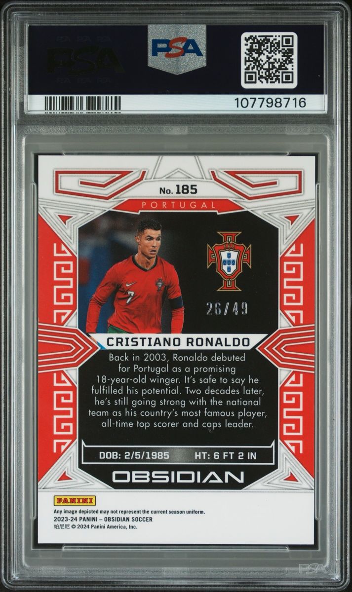 2023 Obsidian Cristiano Ronaldo Electric Etch Red Pulsar #185 /49 PSA 9