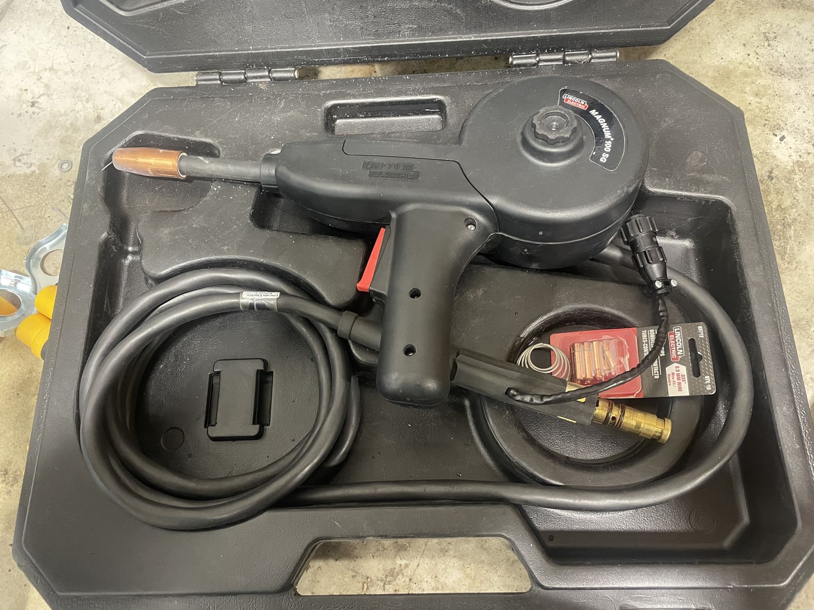 VenmoWelder is in really good condition. I haven’t even run a spool of wire through it. Included is a lincoln spool gun for aluminum welding. I have used it a few times but not much. The welder comes with magnum mig gun, stick electrode holder, flow meter, ground cable, 110 and 220 power leads, cart, and lincoln spool gun.