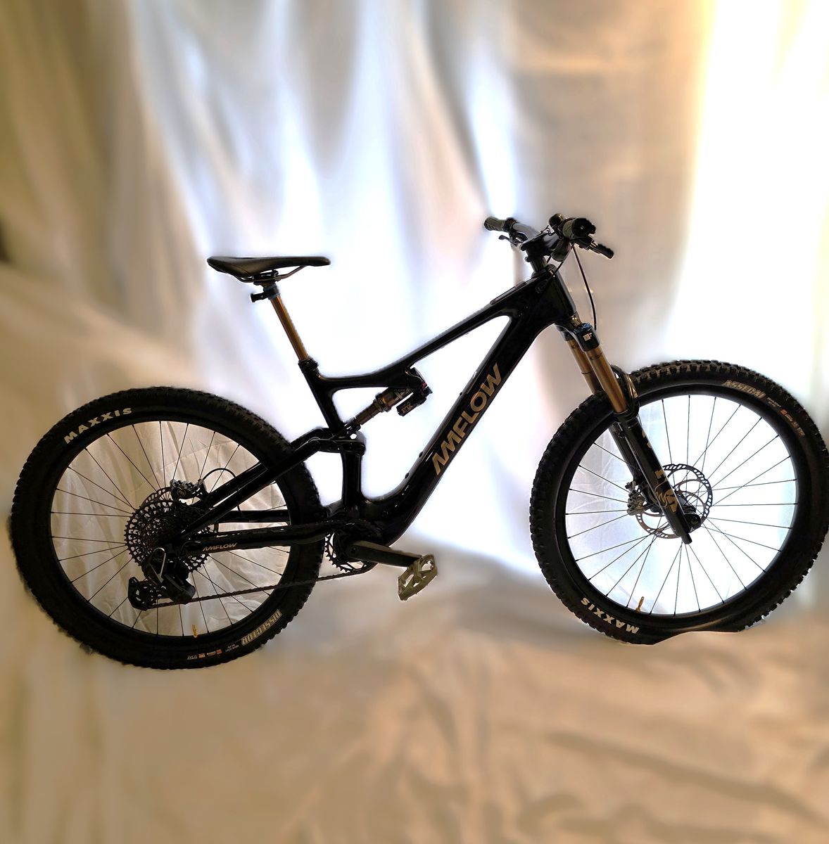 Near factory condition and extremely well maintained Amflow PL Carbon PRO EMTB. Only rode for aprox. 175 miles w/ 5 charge cycles! Ride Wrap (removed for inspection/sale). full carbon fiber frame, bars & wheels! Only 46 lbs! 800 wh battery, 1000 w motor, 120 nm torque! Quiet, light & fast!
