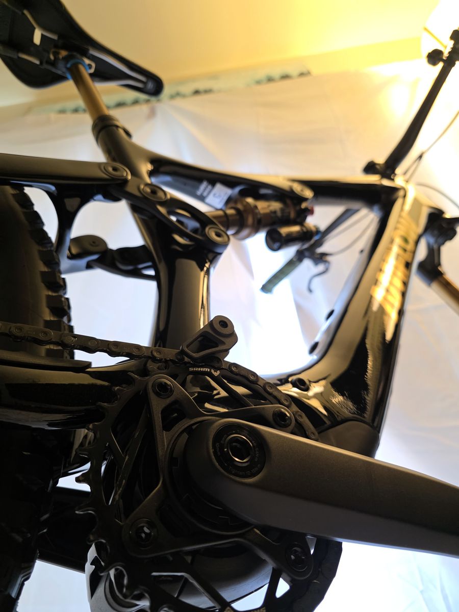 Rear Shock: FOX Float X Factory, Trunnion mount (185×55 mm), EVOL air sleeve, 2-position adjustment w/ LSC adjustment.