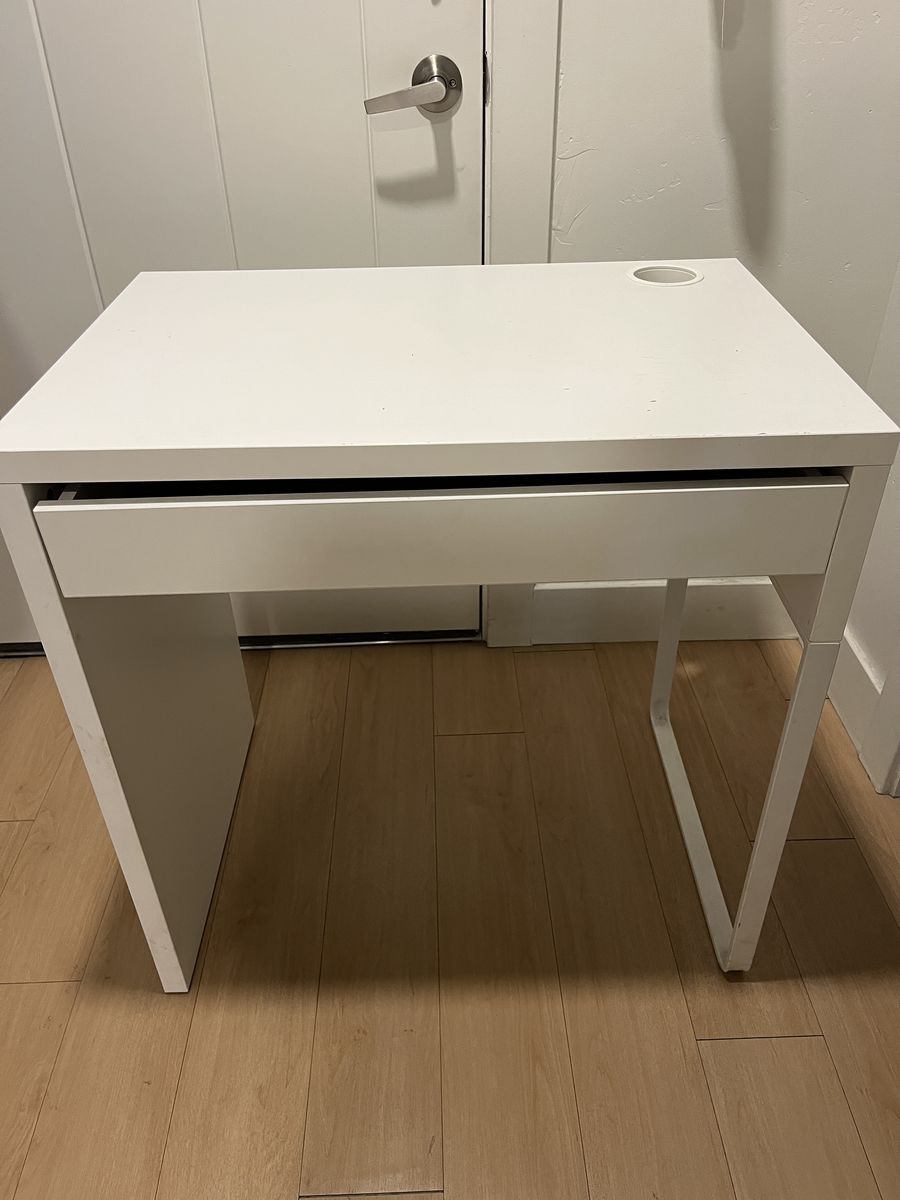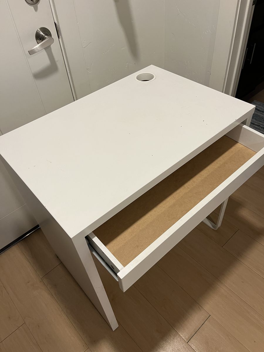 ApplePayIKEA desk, a few years old, normal wear and tear. A few minor scratches on the top. It's this one: https://www.ikea.com/us/en/p/micke-desk-white-30213076/