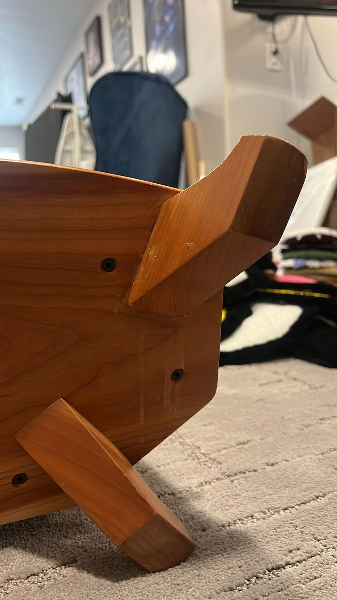 One of the feet is sturdy but repair was a bit sloppy (pictured, not my doing). It’s stable, but something to note. Standing up, it’s aesthetically fine.