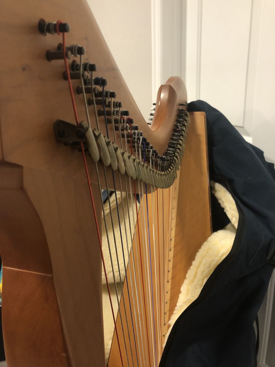 VenmoLovely harp, ready for a new owner. Fantastic to learn on and has a very lovely, sonorous sound. It’s lovely to feel the wood warm up as you play. I really enjoyed playing Irish folk tunes on this instrument. If your kid wants to learn a new instrument, a harp is a great one for your own sanity ;) This is a lever harp with no pedals- you move the levers to raise/lower each string a half step. It’s a really accessible instrument in my opinion; doesn’t take long to make beautiful sounds.