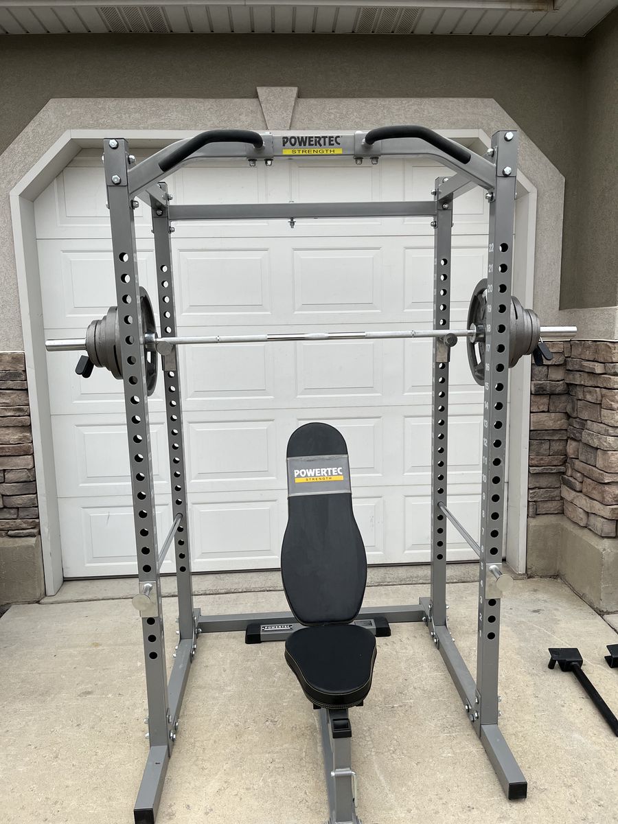 Commercial quality, powertec complete Olympic home gym and brand new condition comes with Olympic power rack with adjustable Jay Hooks, and spotter bars, multi grip, pull-up bar and dip handles. Also comes from the powertec adjustable bench that has a preacher,curl pad / curl bar attachment and a leg curl / /extension attachment. Also included as a 300 pound Troy VTX Olympic weight set also in brand new condition. Altogether to set up would cost well over $2600 new, selling for $1200 firm and will not separate. Curbside delivery is also available for gas money.