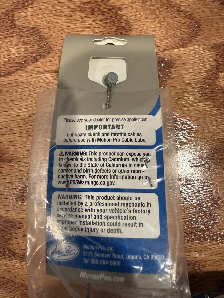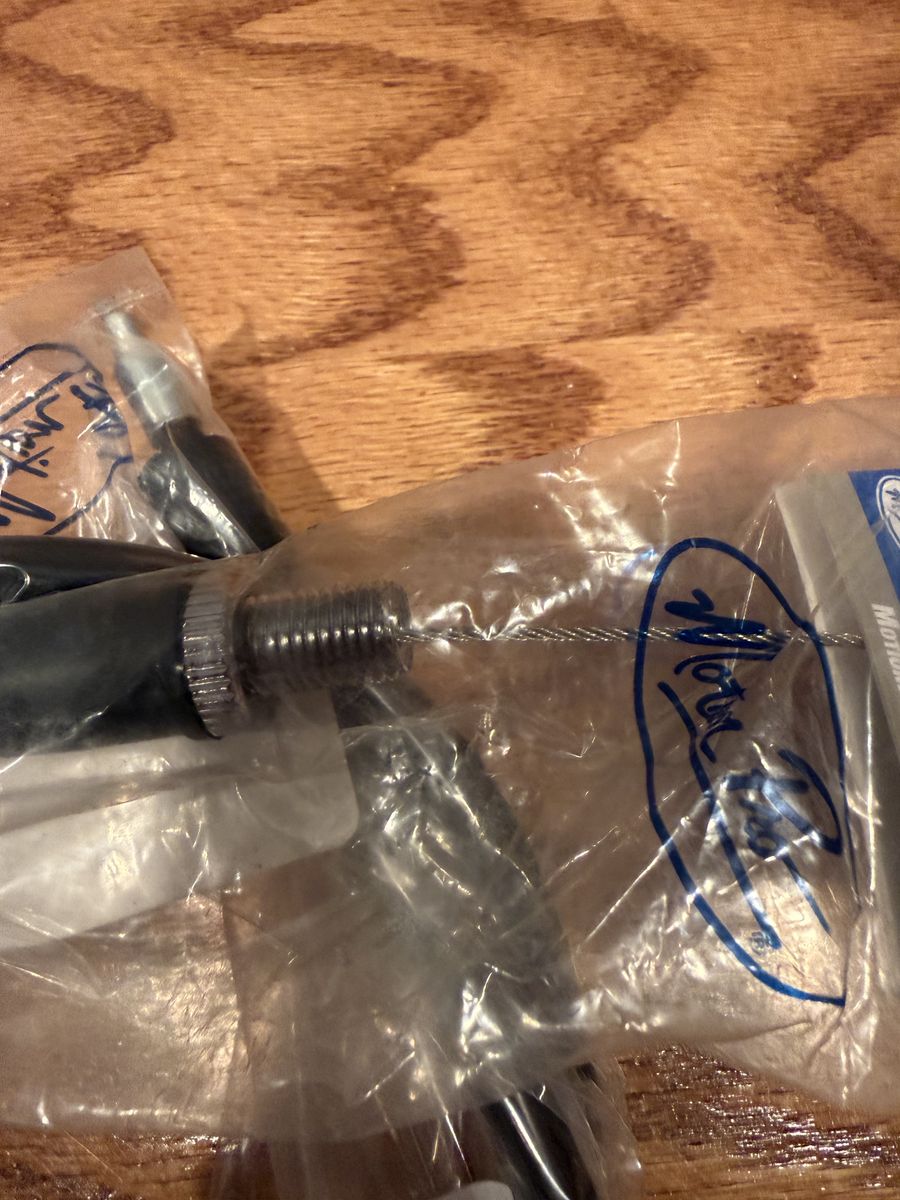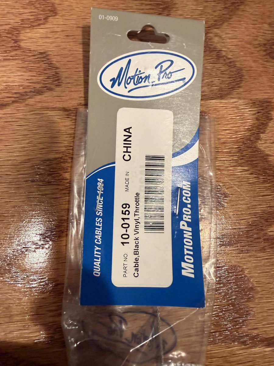VenmoListing a brand new Motion Pro Black Vinyl Throttle Cable. This cable is designed for two-stroke engines, and the carb side is not threaded. The MPN is possibly 10-0159.