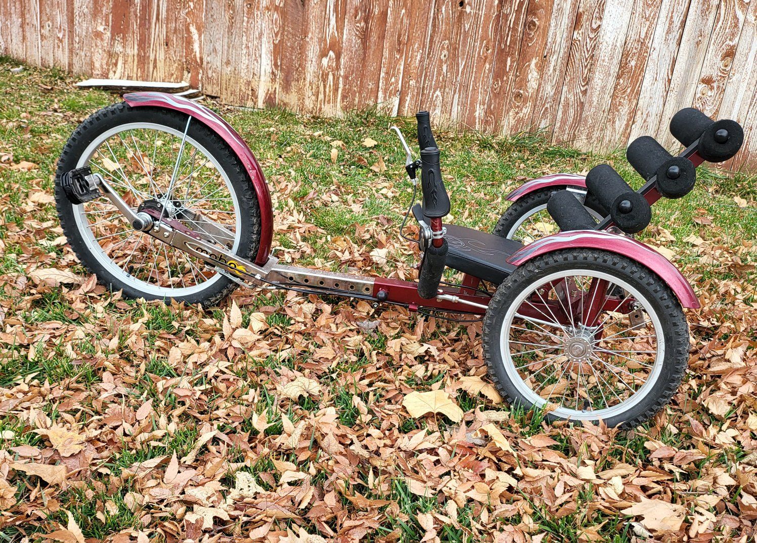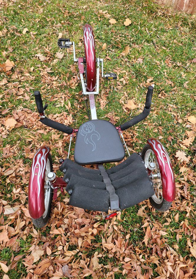 CashAppCondition: Excellent Pickup: Local Price: $600 Size: 10 slot adjustment for people from 4′ tall - 6’3″ tall and a weight capacity of 250 lbs. Weight: 40 lbs. MORE INFO: Mobo Cruiser Shift comes in hard-to-find red with silver flames (normally $700 if you can find it ). The "World's First Reversible Cruiser". Its primary advantages are the reverse gear, which allows you to backtrack without getting off or using your feet, and the reclining foam seat, which provides customized lumbar support for long-distance comfort. The Shift offers an innovative rear-wheel steering system with hand caliper brakes for the rider’s safety. Due to iits size it is best to transport them in a truck, back of an SUV. Perks: Comfortable, low-impact riding, stability (no balancing anxiety) Adjustable fit Smooth rides and good vibes, Good for quick trips to the store, easy exercise for anyone or just good old outdoor fun!