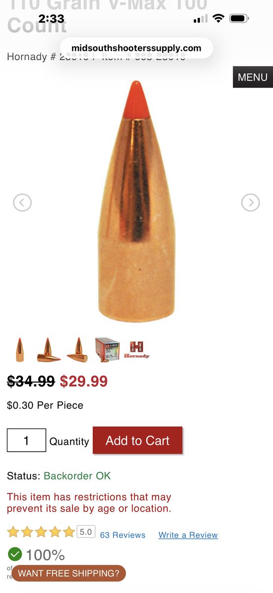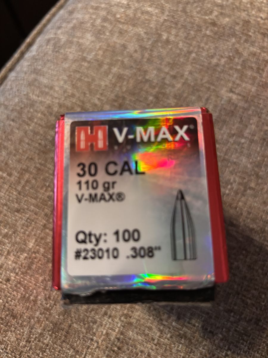 Brand new box of hornady max 30 cal 110 grain (100 count ) .308 caliber! These are 29.99 a box at the store as shown in photos! Don’t pay retail, save 5.00 and call Dustin now at 801-205-3404. I need them gone! 2 boxes available!