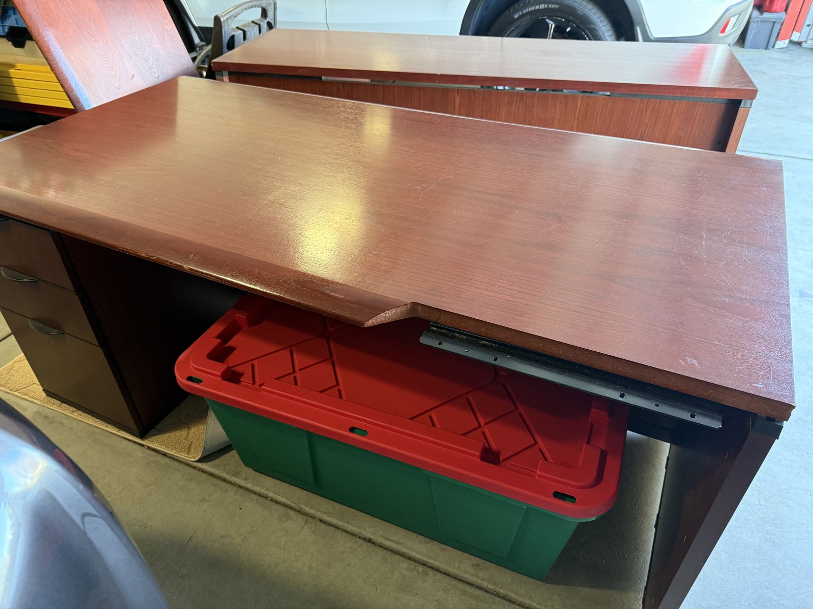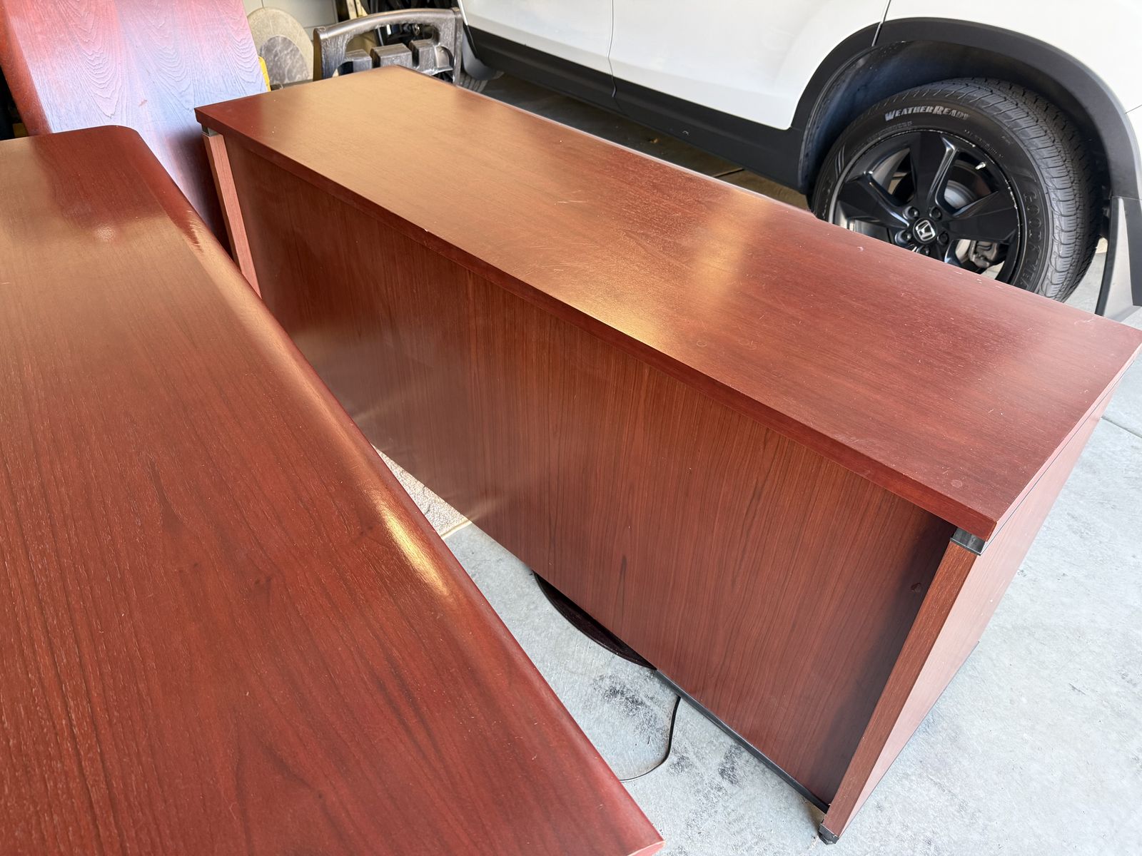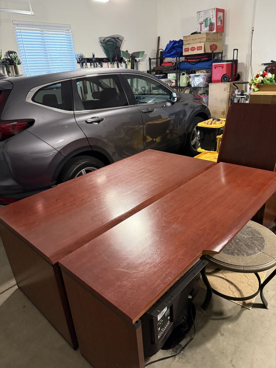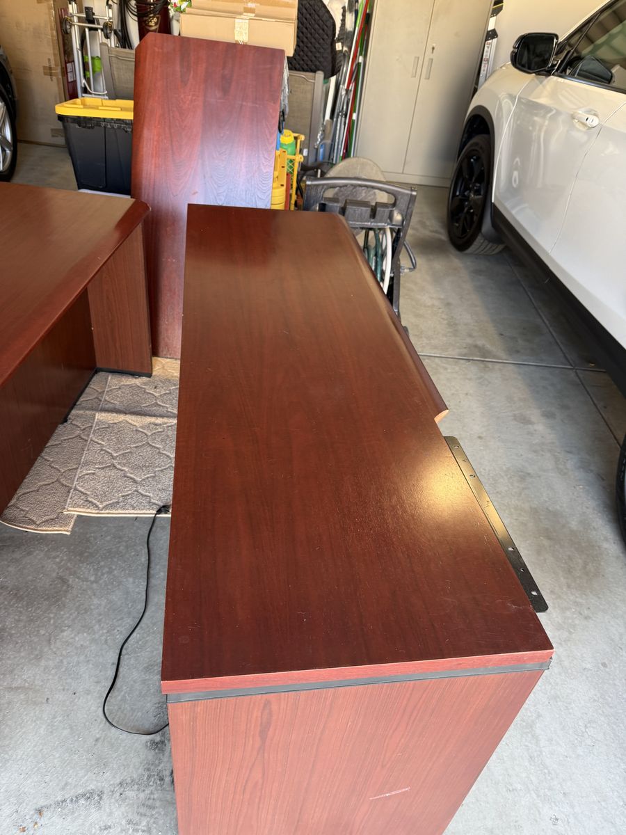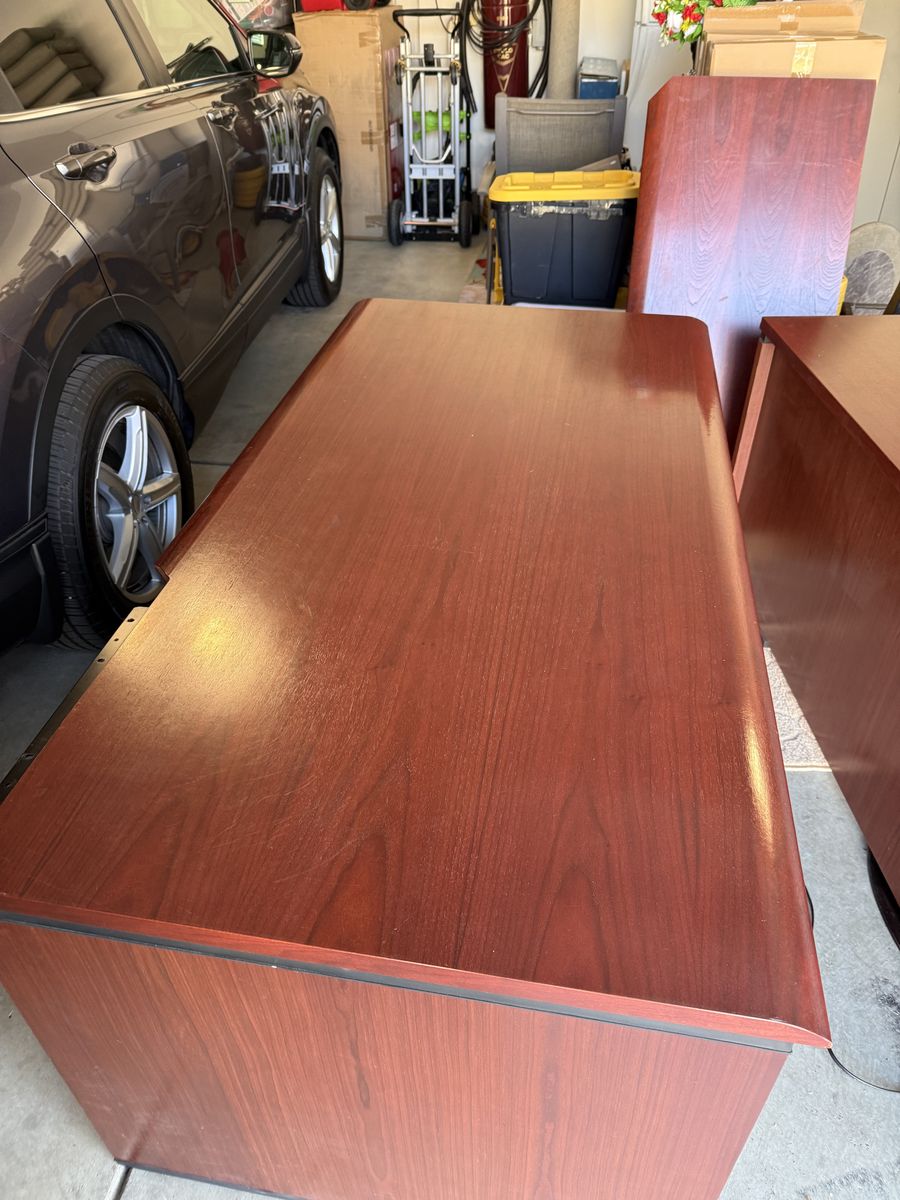 HIgh quality executive desk, dark cherry finish. Looks great in the office or home office. This is a high end Steelcase desk that comes in three sections and easy to reattach (right return). The desk is heavy and well constructed, very nice finish. You just need to pick it up and transport. It is easy access in my garage. Come take a look, I am just trying to give the desk a new home. Please text at 801-953-4904 or Message me.