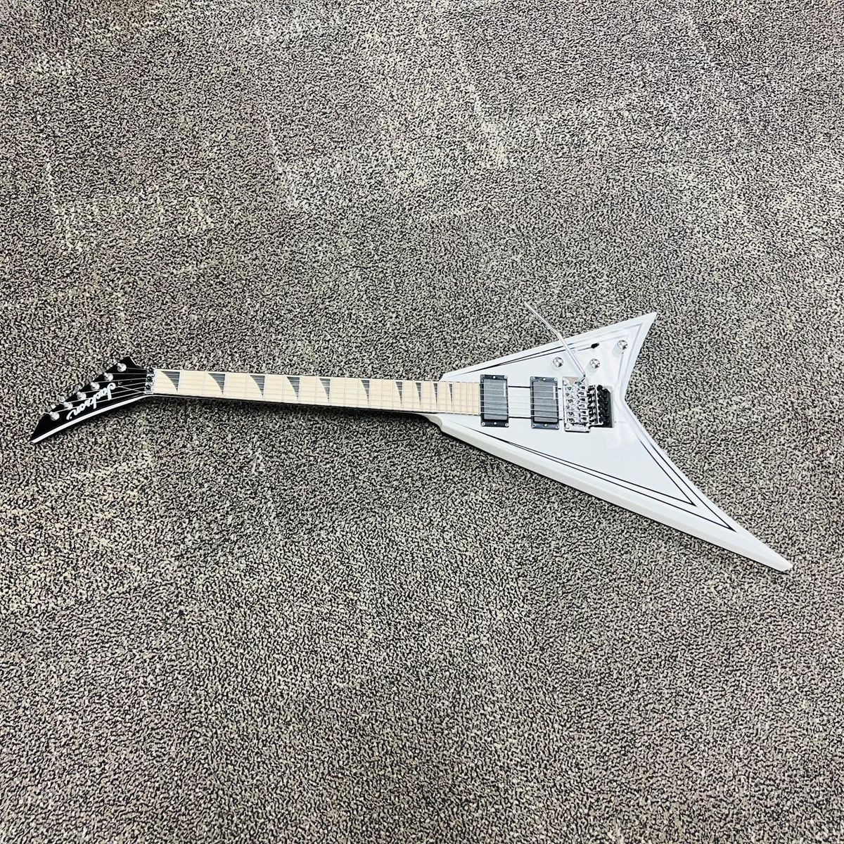 The Jackson X Series Rhoads RRX24M in Snow White with black pinstripes delivers aggressive style and high-performance playability for modern rock and metal players. Featuring a poplar body and a through-body maple neck, this guitar provides strong sustain and stability.