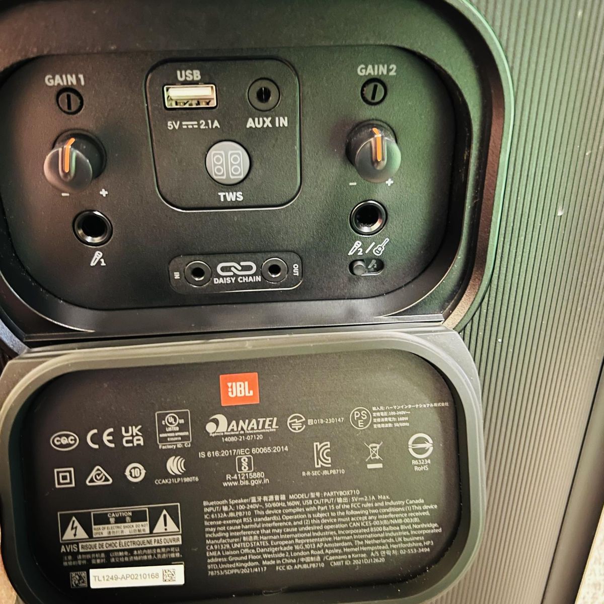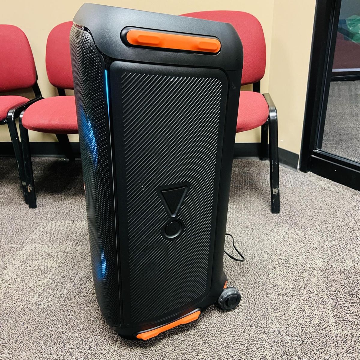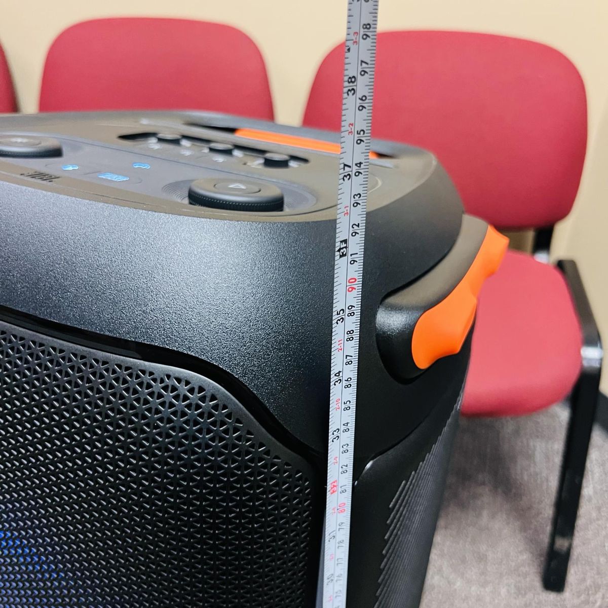 Elevate your parties with the JBL PartyBox 710 Portable Party Speaker. Designed for music lovers and entertainers, this premium speaker delivers a powerful 800W of JBL Pro Sound, ensuring deep bass and crystal-clear highs. Seamlessly connect your devices via Bluetooth, USB, or AUX inputs to play your favorite playlists. The signature dynamic RGB lightshow syncs to your music, creating a vibrant atmosphere and transforming any gathering into a full-blown party. Built-in wheels and a sturdy handle make it easy to transport, whether you’re hosting indoors or taking the celebration outside. The splashproof IPX4 design ensures the PartyBox 710 can withstand accidental spills and weather, so you never have to stop the fun. Plug in a mic or guitar for interactive performances – perfect for karaoke nights. Combine two PartyBox 710 speakers wirelessly for an even more immersive stereo experience. Don’t miss out – bring home the JBL PartyBox 710 and turn every moment into a memorable event!