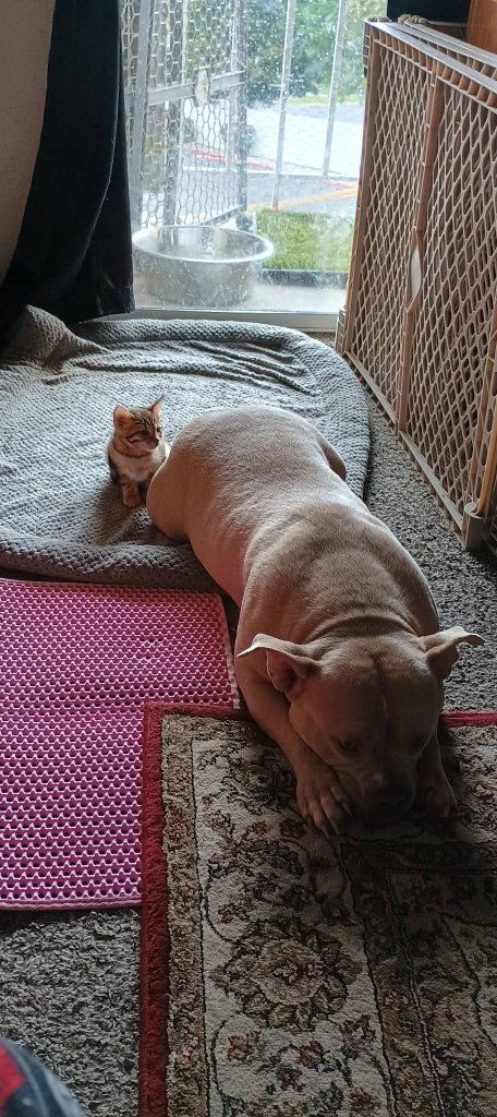she is very sweet her name is Molly she's good with cats kids of all ages and other dogs she does know how to sit and stay before eating and with a quick correction on the leash she does not pull and she's also potty trained I usually leave the door open and my apartment and she goes out and goes to the bathroom have not trained her with a doggie door so might need to be trained with that she also does not bark when people knock at the door or come in she also will not dart out the door if you tell her to sit and stay due to me having a autistic son that does not like dogs in his face and have to rehome her because of it and don't want her to just live in a kennel because my son doesn't like dogs in his face I want him to be comfortable knowing that there ain't somebody going to be in his face but I also want her to go to a good loving home where she won't have to stay in a kennel she also has a ear infections that I'm trying to cure but they keep coming back and don't have the time to keep them clean she is she is dual registered with UKC and ABR she is the sweetest girl ever you ever meet she will come with dewormer I've been giving her and her food and water dish a bag of food her leash and color she is not fixed her birthday is December 15th 2021 I'm asking for $3,000 with her papers or without her papers $600 for her if interested really don't want to take her to the pound because Don't want her to get put down if they are too packed please if somebody is interested let me know if not please don't respond serious inquiries only