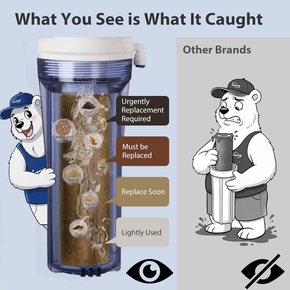 SEE WHAT’S CAUGHT – The transparent first-stage filter housing makes it easy to monitor contaminant buildup, ensuring timely filter changes.