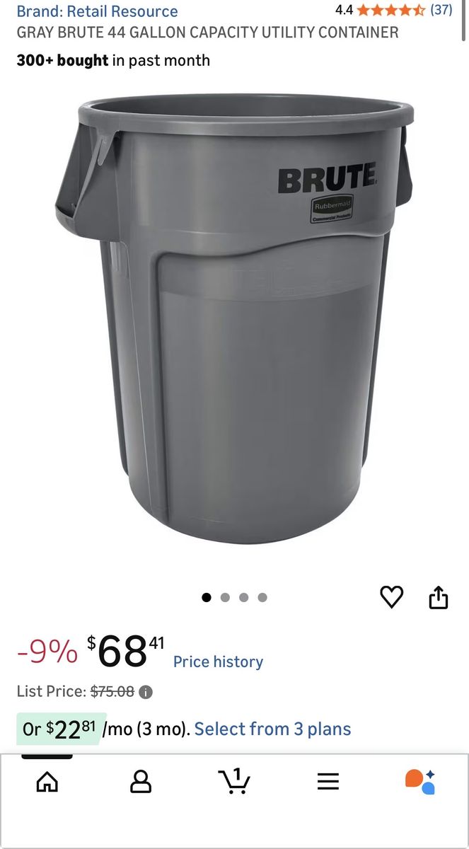 VenmoGRAY BRUTE 44-GALLON UTILITY CONTAINER – $50 FIRM\