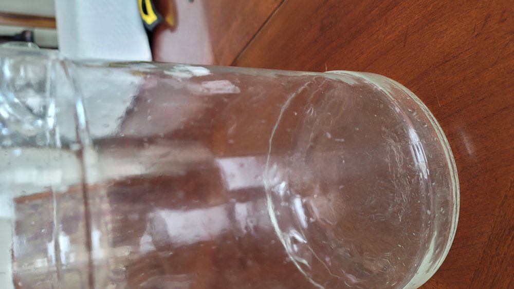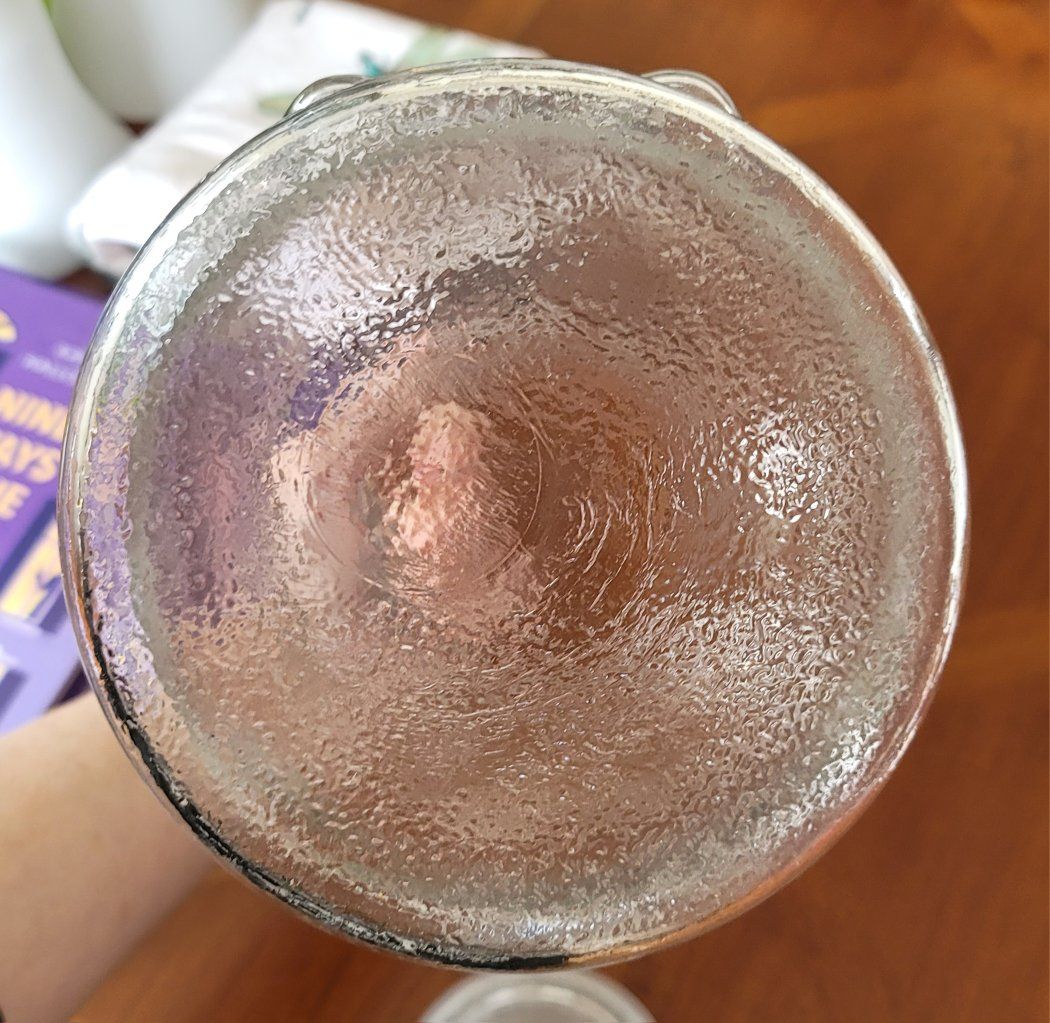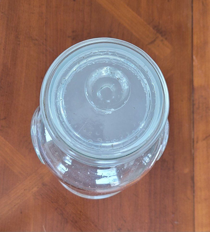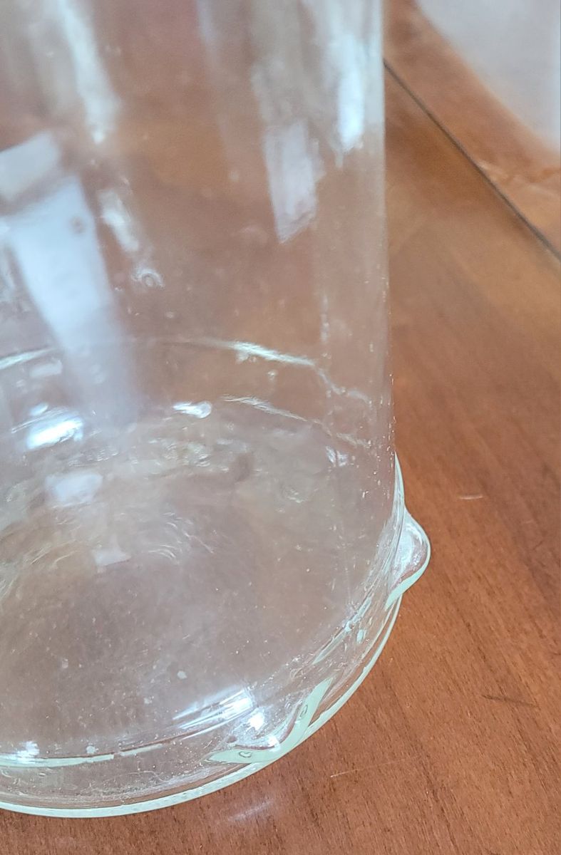 PayPalI am selling a really neat vintage, glass canister. This piece has no markings that I can find but is kind of a dented texture glass look (looks like small speckles in pictures) with two handles, two small feet and lid with sealing plastic insert. I have had this for many years on display and various uses, it's a fun item to own with lots of possibilities. Seal is not air tight, but is clean and intact. No chips or cracks. Has about 4 inch top opening and stands just over 14 inches tall.