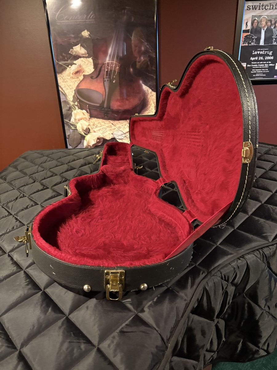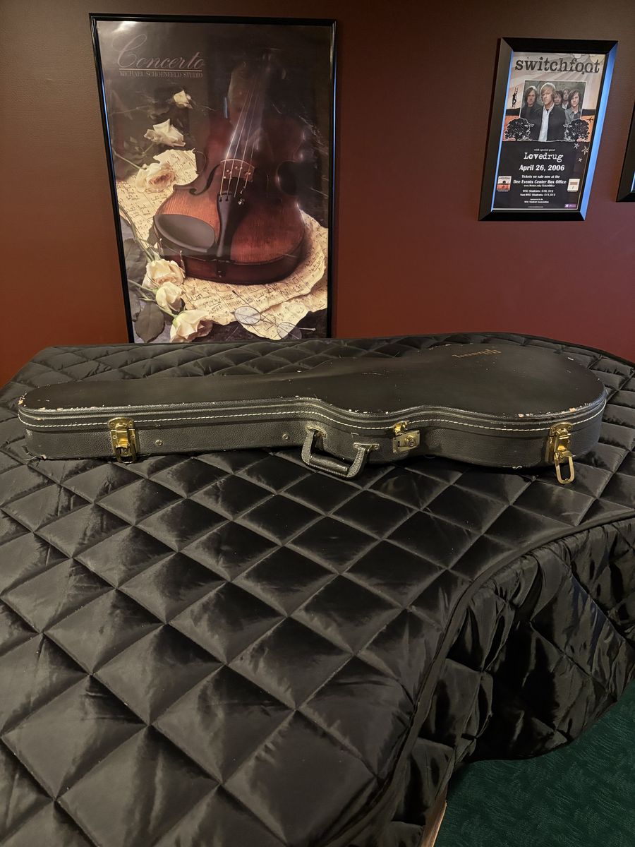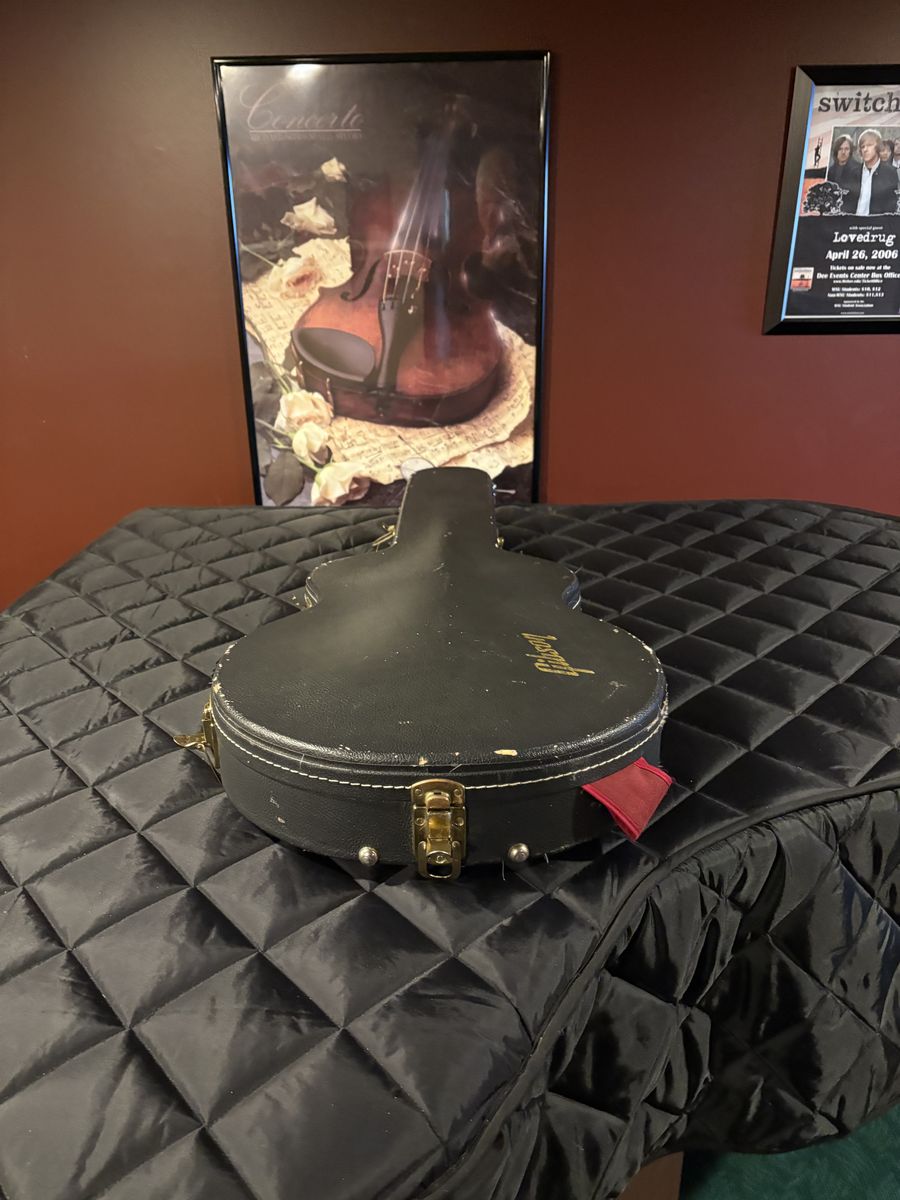 1984 Gibson 335 case, clean interior, relic'd the old fashioned way. All latches work great, may even have the key. Aside from the worn tolex it's 100%. In other words no holes or cracks. Sold as is, cash and carry. Thanks for looking.