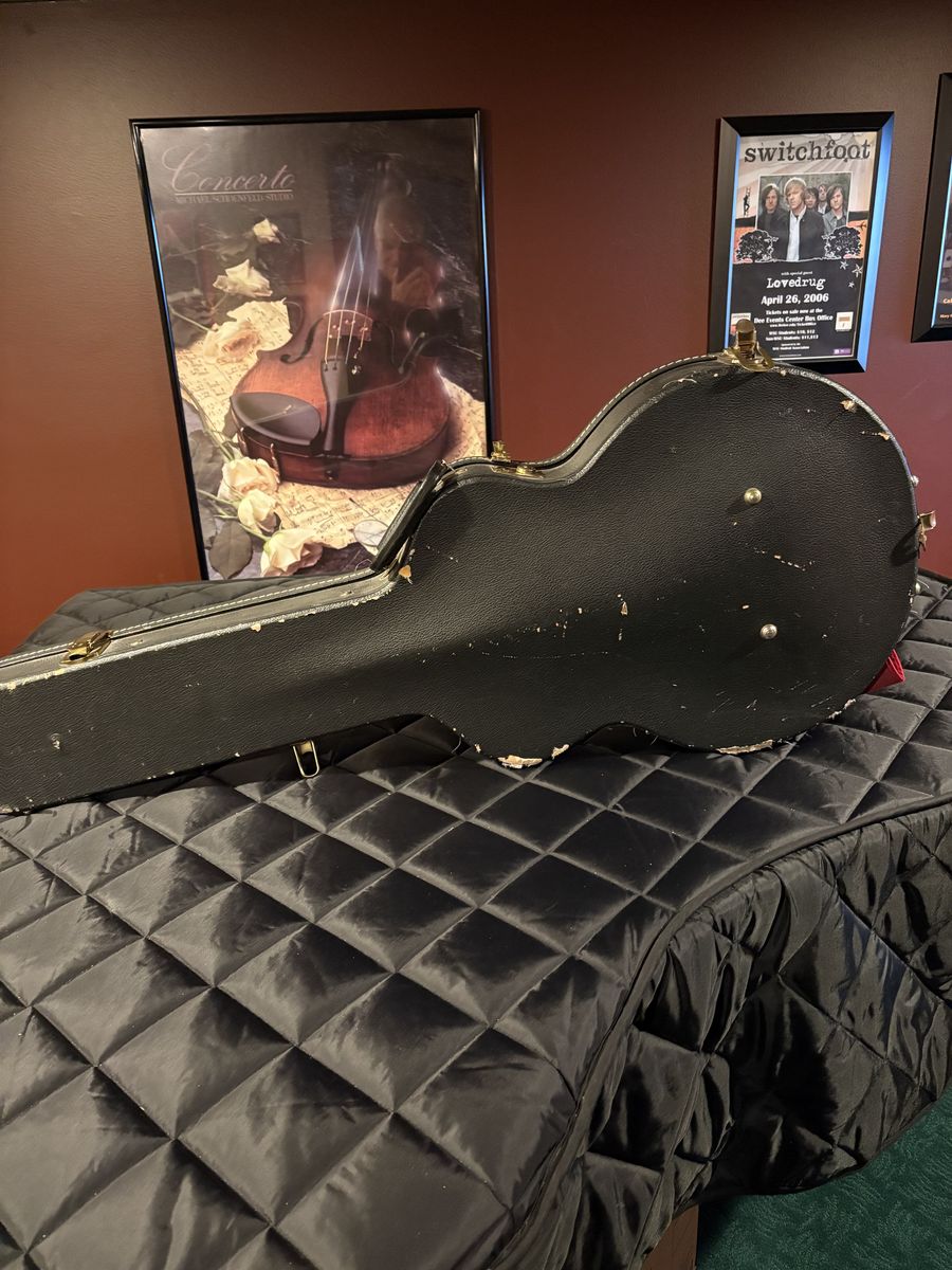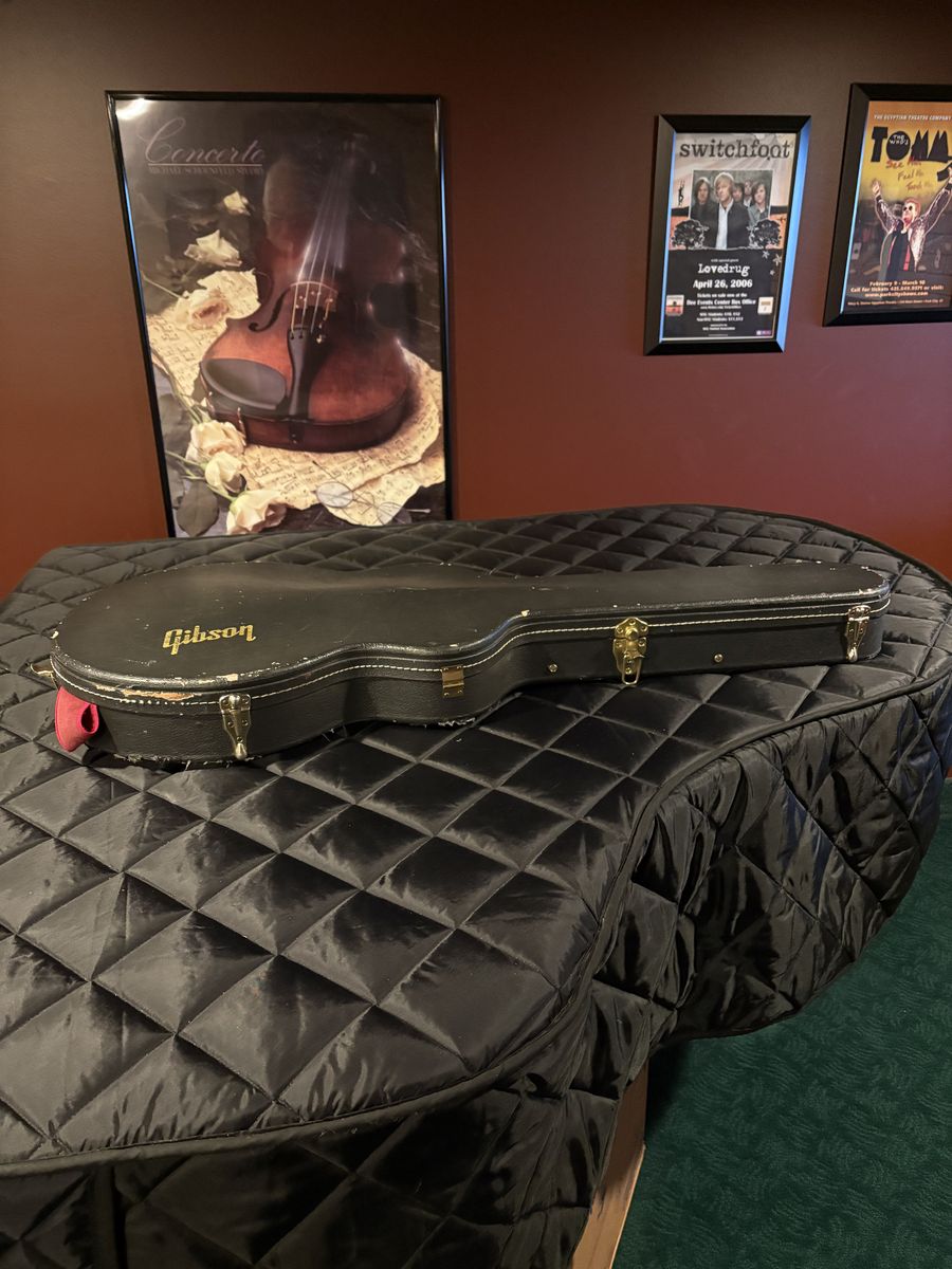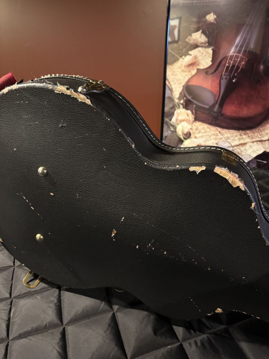 1984 Gibson 335 case, clean interior, relic'd the old fashioned way. All latches work great, may even have the key. Aside from the worn tolex it's 100%. In other words no holes or cracks. Sold as is, cash and carry. Thanks for looking.