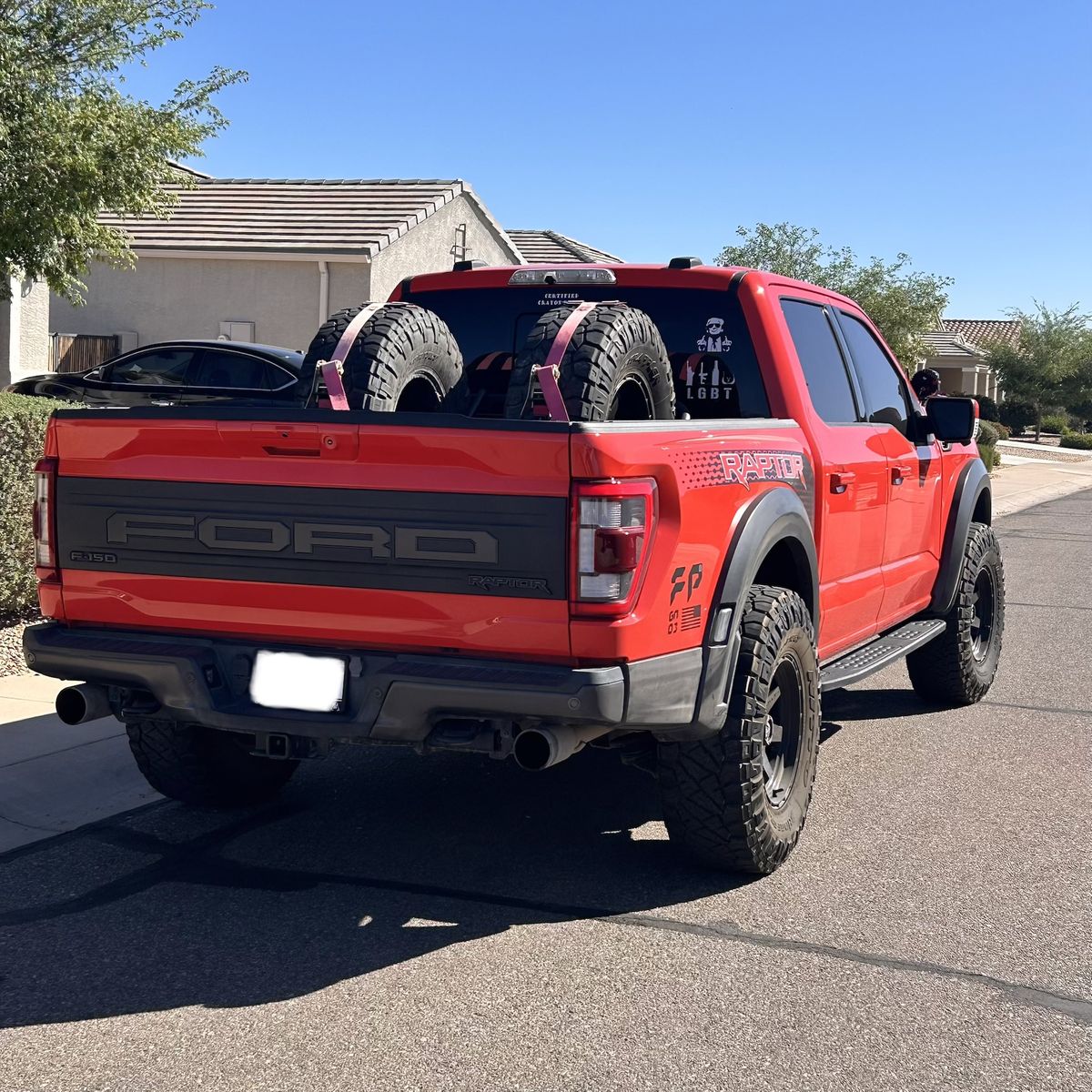 Specs & Upgrades: • Factory Raptor suspension (designed to clear 37s) • 37” tires on 18” wheels • Leveling kit • AFE aftermarket cold air intake • VT custom engine tune • Dual tire chase rack with two full-size spare tires • Carbon Fiber Package • Bang & Olufsen (B&O) sound system with headrest speakers • Brand new battery (installed a few months ago) Front is wrapped in PPF and ceramic tint on windows.