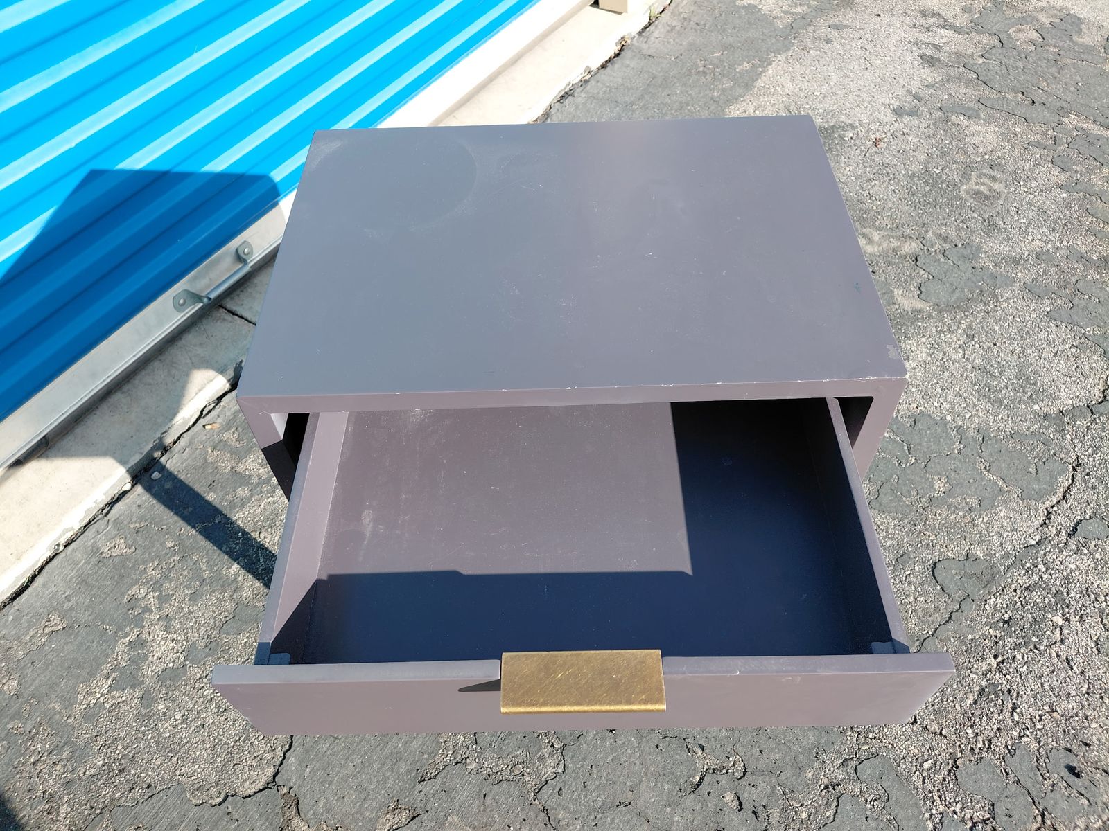 Check out this super cute modern wood nightstand. Overall, it is in really good condition. There might be some imperfections from moving, a few scratches and signs of use, etc.