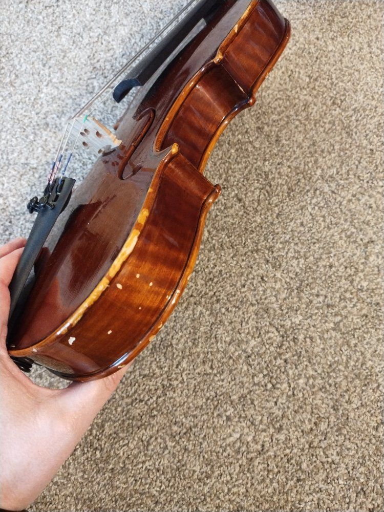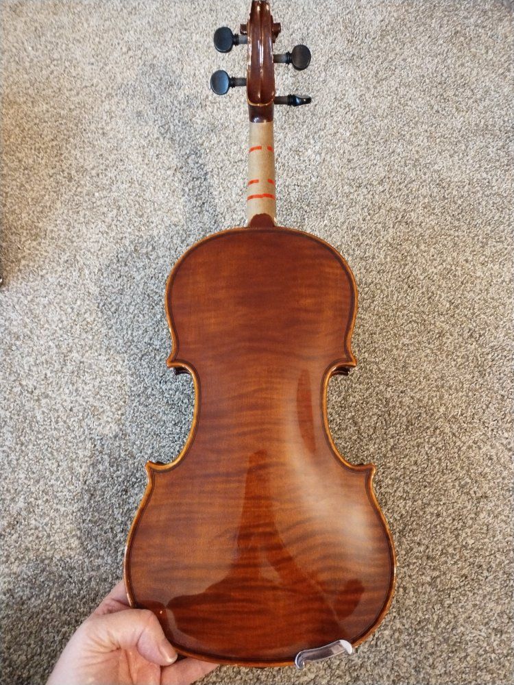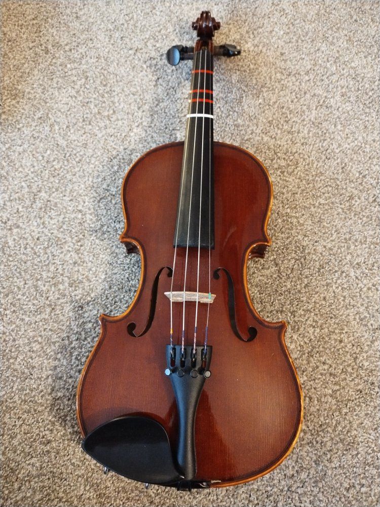 Venmo2007 Klauss Mueller Etude violin. Comes with a hard zippered case with backpack straps. This is a used instrument and has a few dings on it, but nothing that affects playability. Generally, a 1/4 size will fit a child age 5-7.