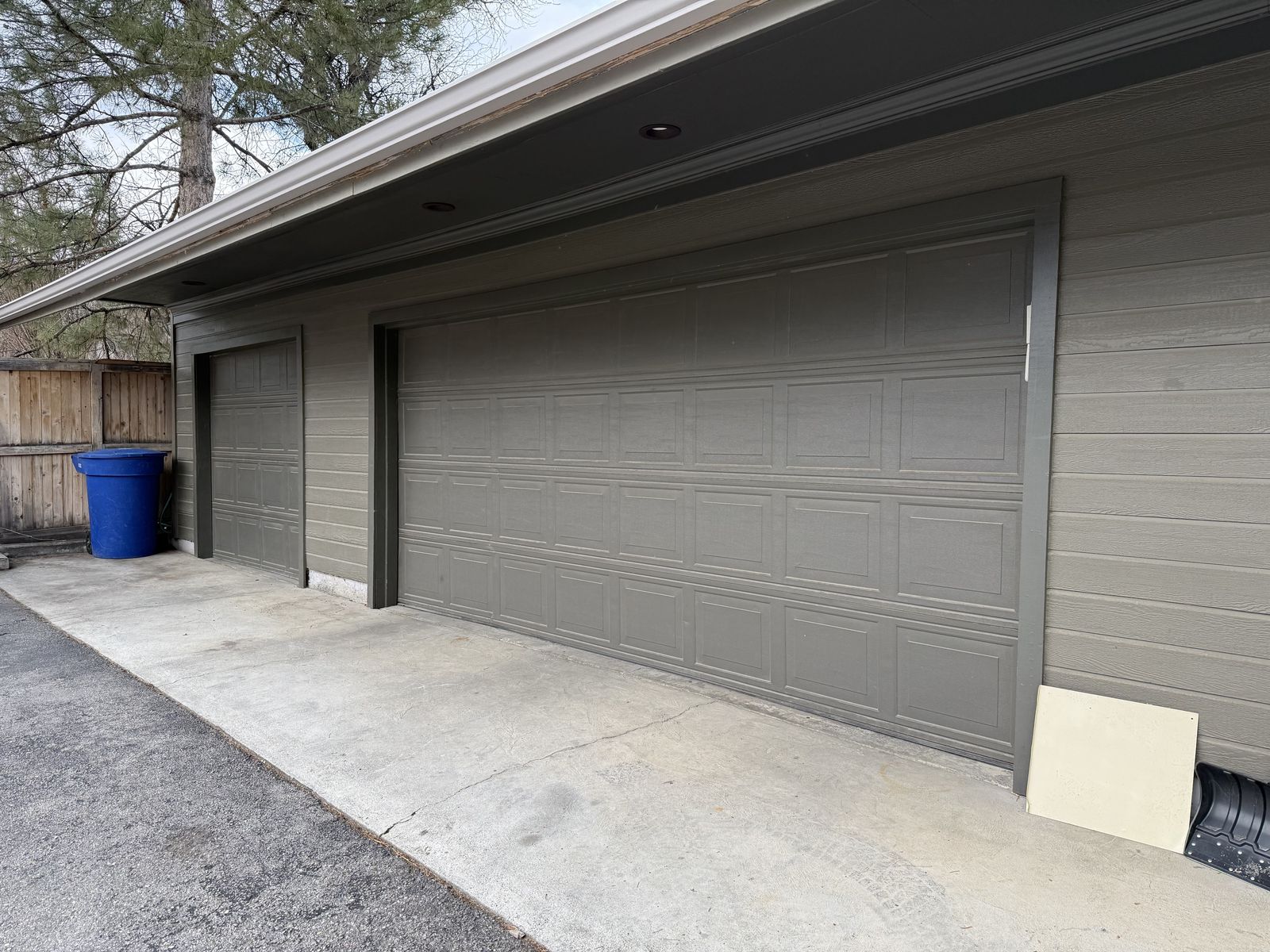 Venmo2 Insulated Garage Doors for Sale; 1 - 7' x 16' wide & 1 - 7' x 8' wide - brown on the outside & white in the inside. Work great. Comes with the Rails & hardware. small ding in the 8' wide door.