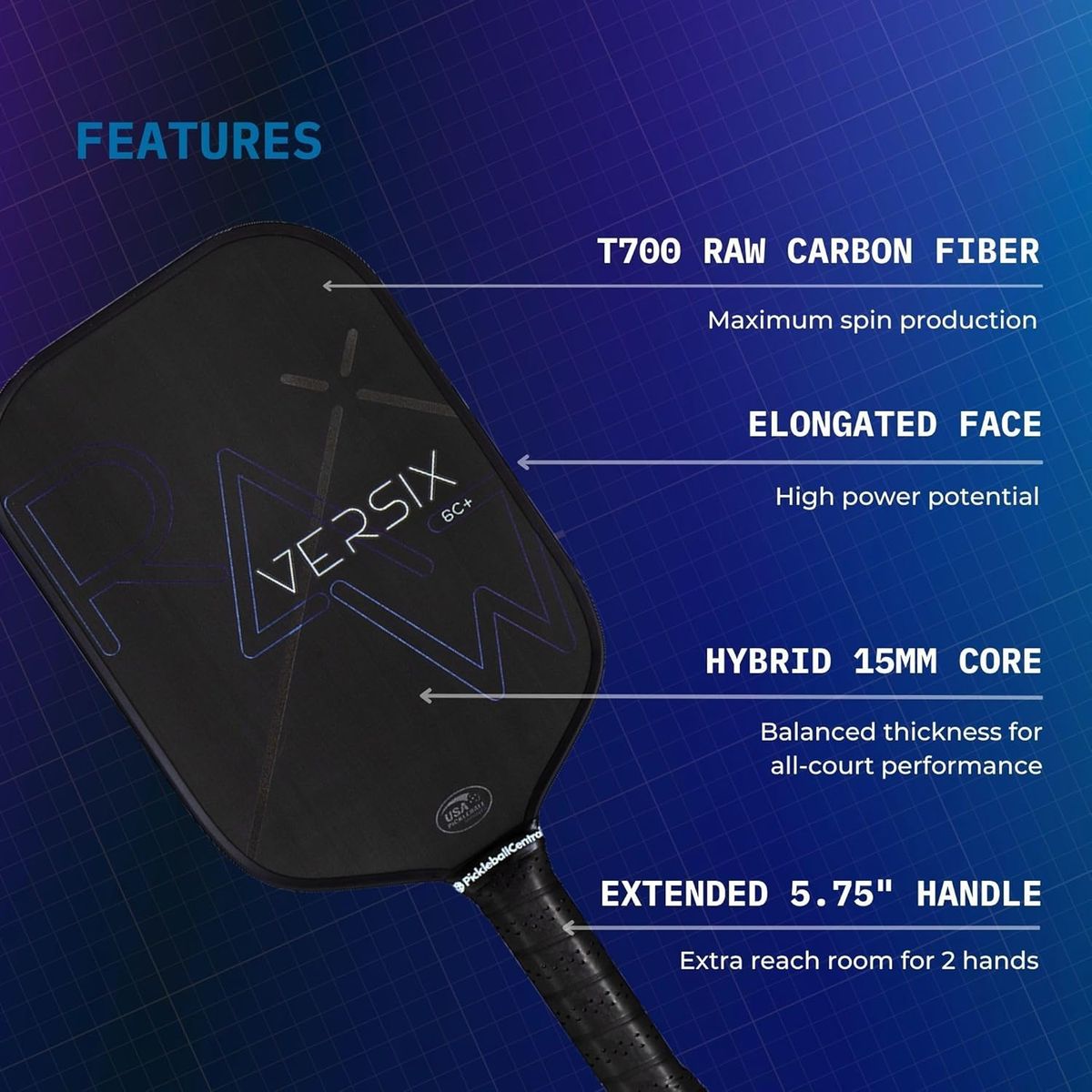 NEW IN BOX! VERSIX RAW Carbon Fiber Pickleball Paddle,Polypropylene Honeycomb Core, Carbon Fiber, 7.9oz (Midweight), 15mm Core