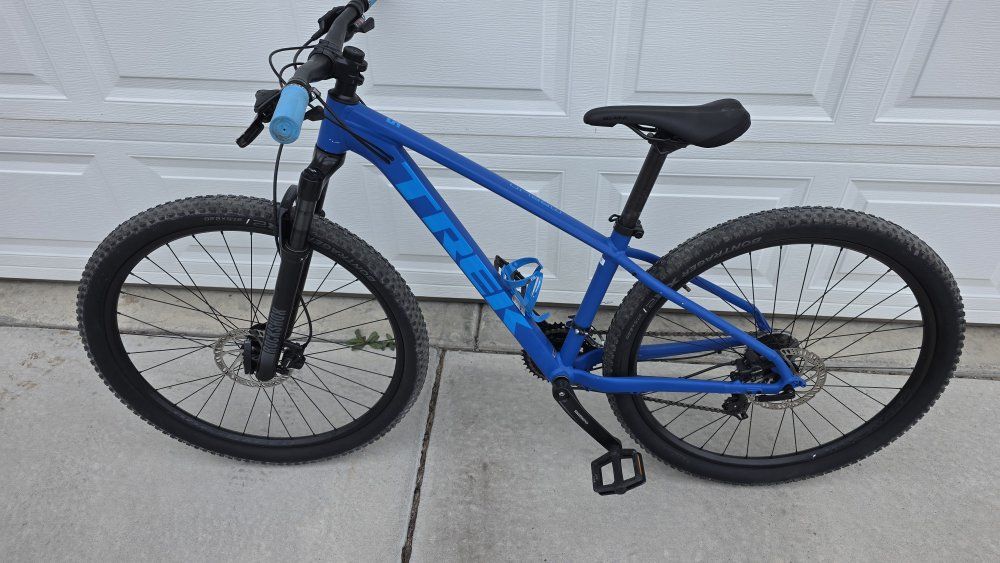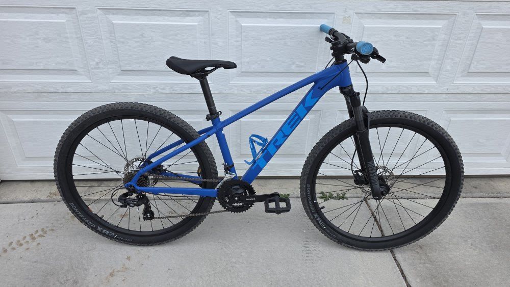 VenmoThis is a very lightly used Trek Marlin 5. It is in excellent condition and has seen very minimal rides under 50 miles at most, and most on road. My daughter rode this and never really got into biking, Shes now outgrown it. it has an upgraded rockshox air fork, new saddle and new grips, the handlebar and stem are from a kona as the oem bars and stem were far to wide and long for her. this is a great bike. it is a 15.5 inch or a small. has 27.5 inch wheels and is in excellwnt working condition.