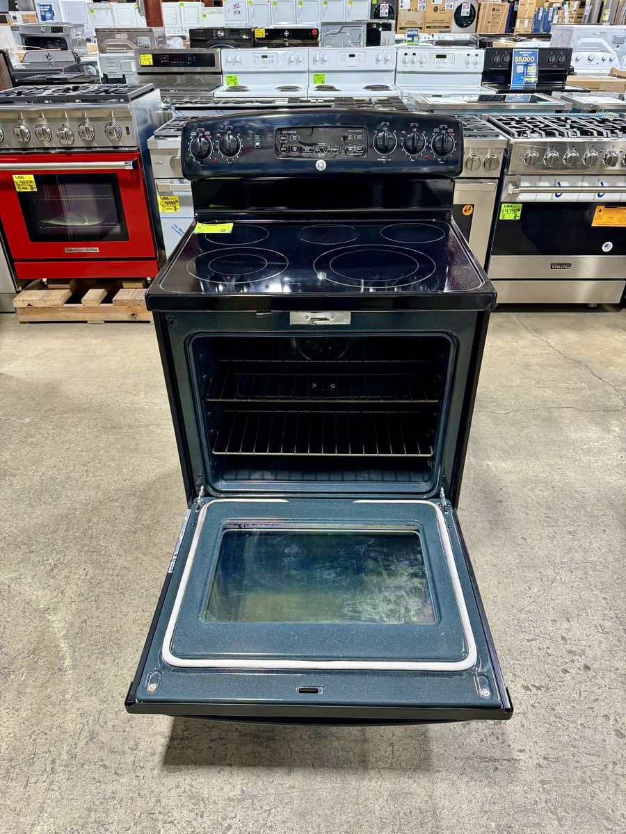 This GE glass top range has self-clean and convection. It is in excellent working condition and is sold with a warranty.