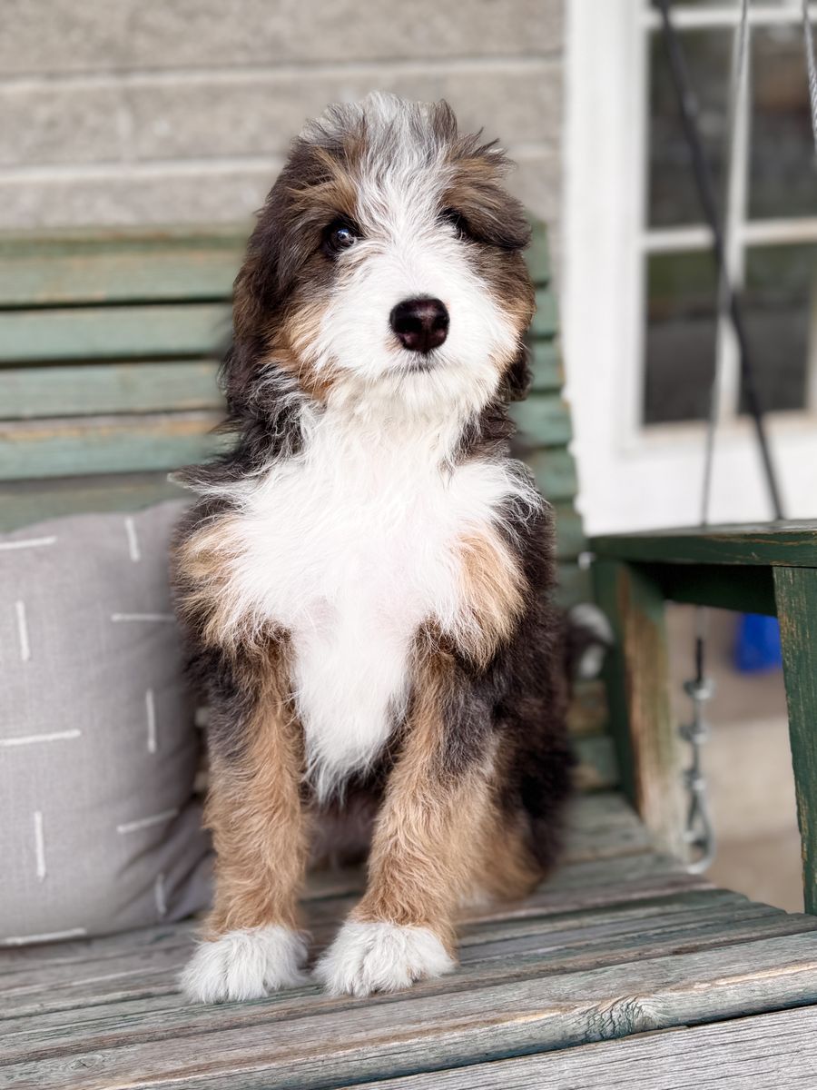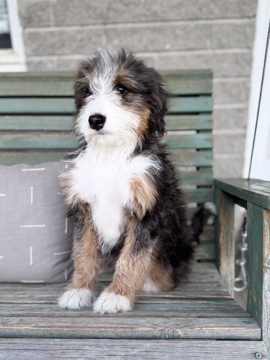 Meet this beautiful female Merle Bernedoodle, featuring a striking 9/10 merle intensity and a sweet, easygoing temperament. She has been fully Embark tested for health and genetics, giving you confidence and peace of mind. • Gender: Female • Color: Merle (9/10 intensity) • Health: Embark tested • Training: Doggy‑door trained and crate trained • Temperament: Friendly, social, and eager to bond About Her She has a soft, wavy coat with bold merle patterning and expressive eyes. Her training foundation makes her an easy transition into her new home, and her affectionate personality makes her a wonderful companion. Perfect For • Families • Therapy‑potential homes • Anyone seeking a well‑mannered, genetically tested companion If you'd like photos, more info, or want to reserve her, just let me know! *Breeding rights are an additional $1000.