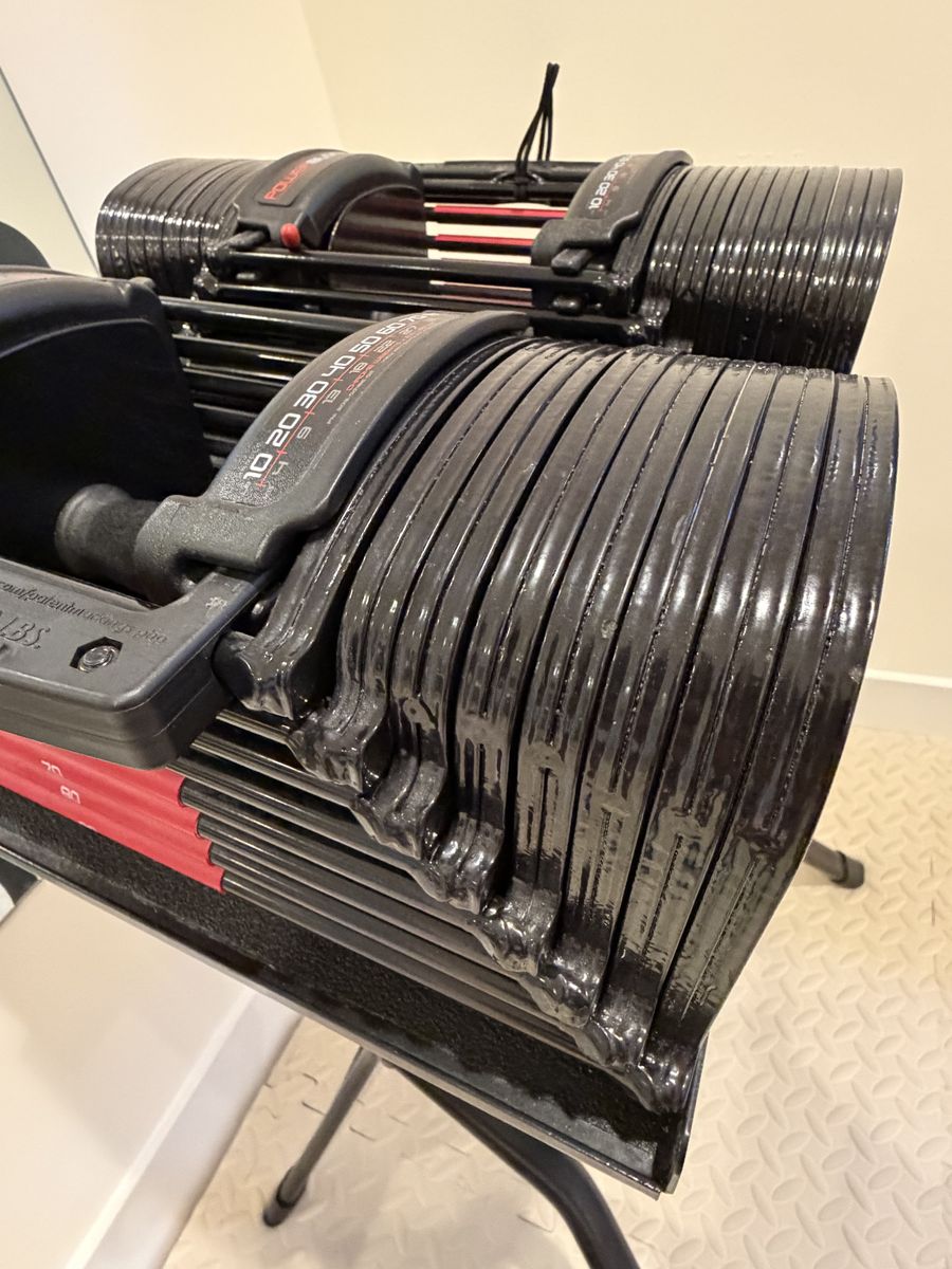 VenmoAdjustable dumbbells 90 lbs each Comes with compact stand